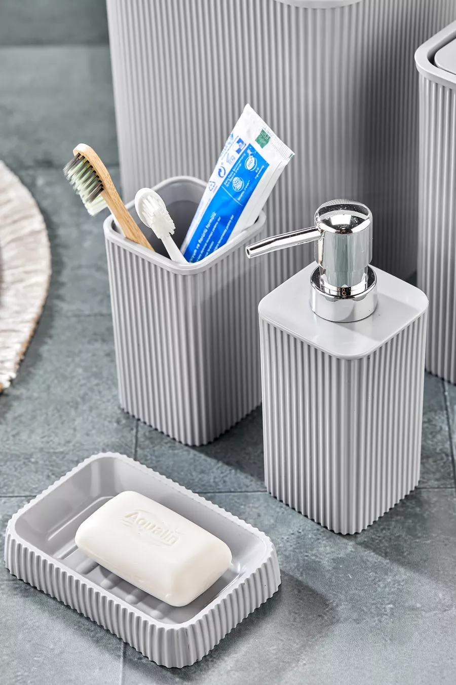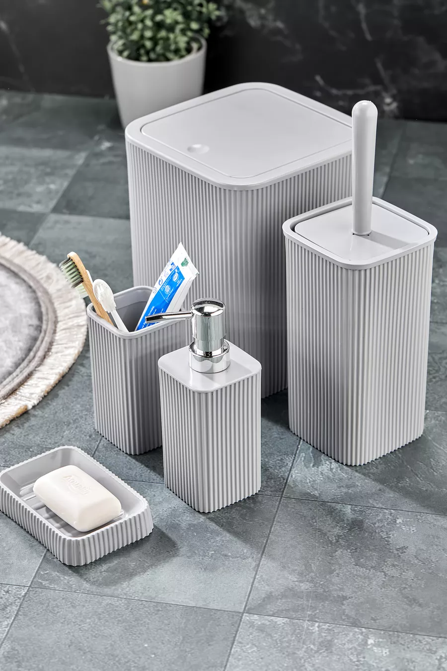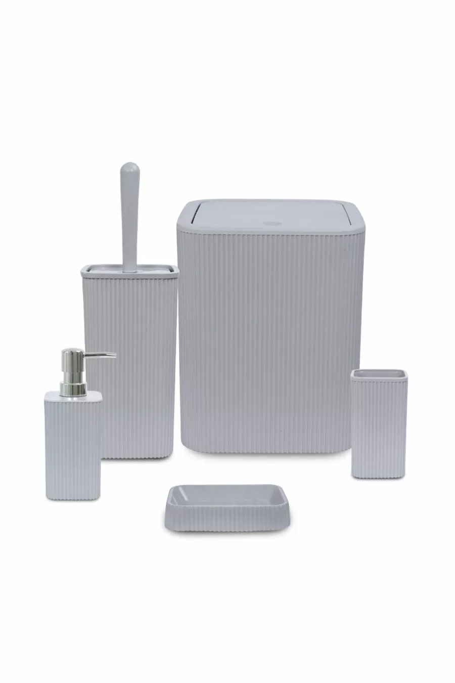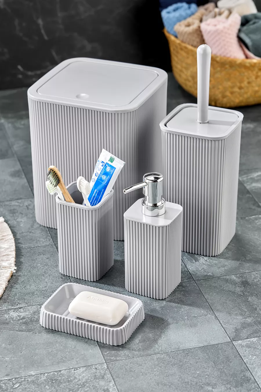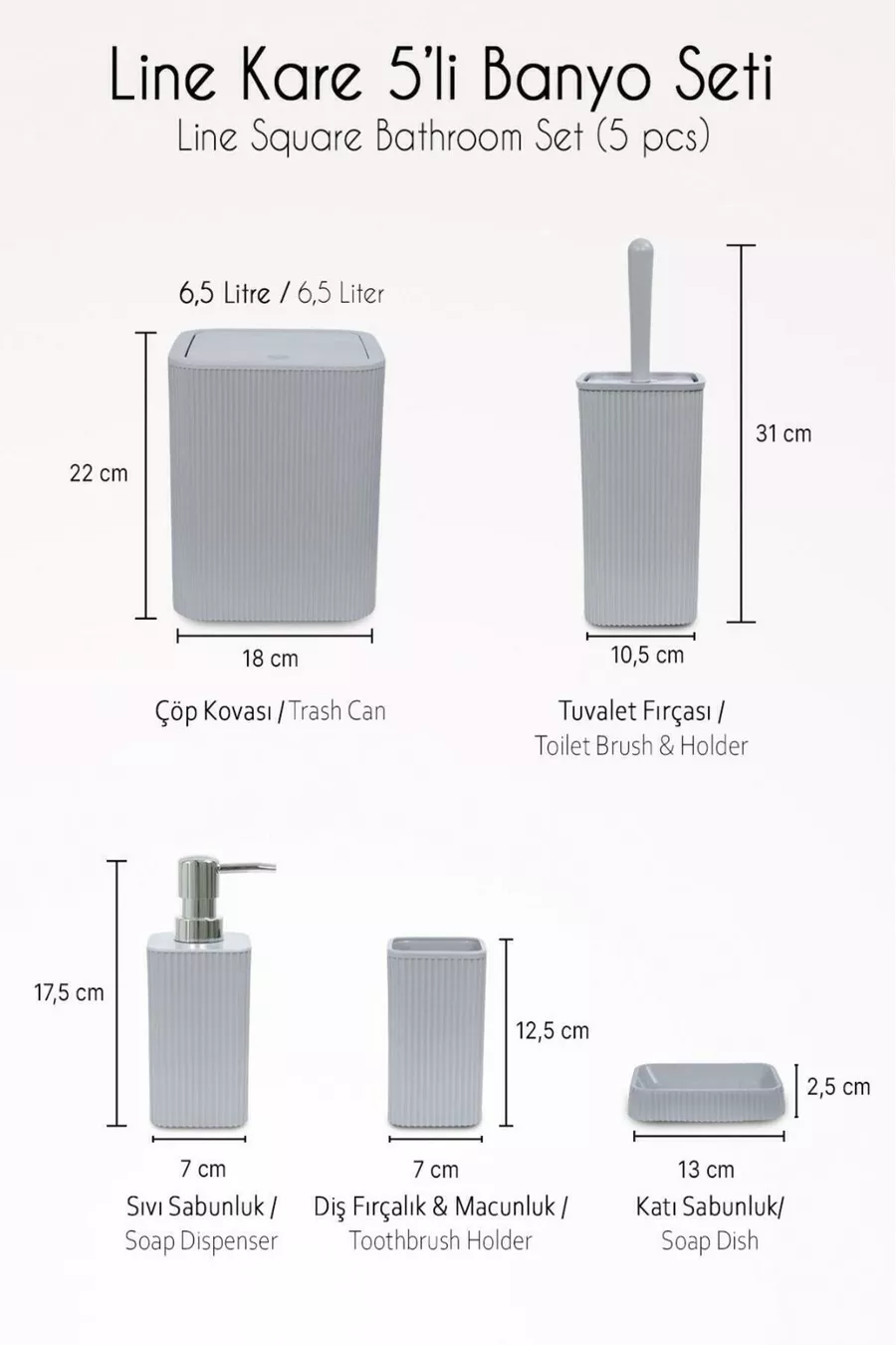 Line 5 Parça Kare Banyo Seti - Çöp Kovası WC Fırçası Sıvı-Katı Sabunluk Diş Fırçası