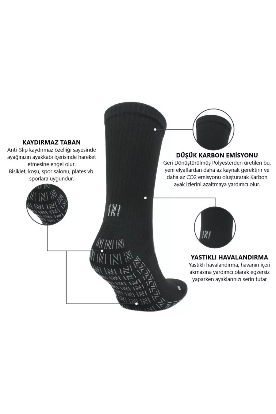 Lizard Multi-sport Kaydırmaz Tabanlı Spor Çorabı Siyah