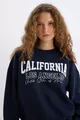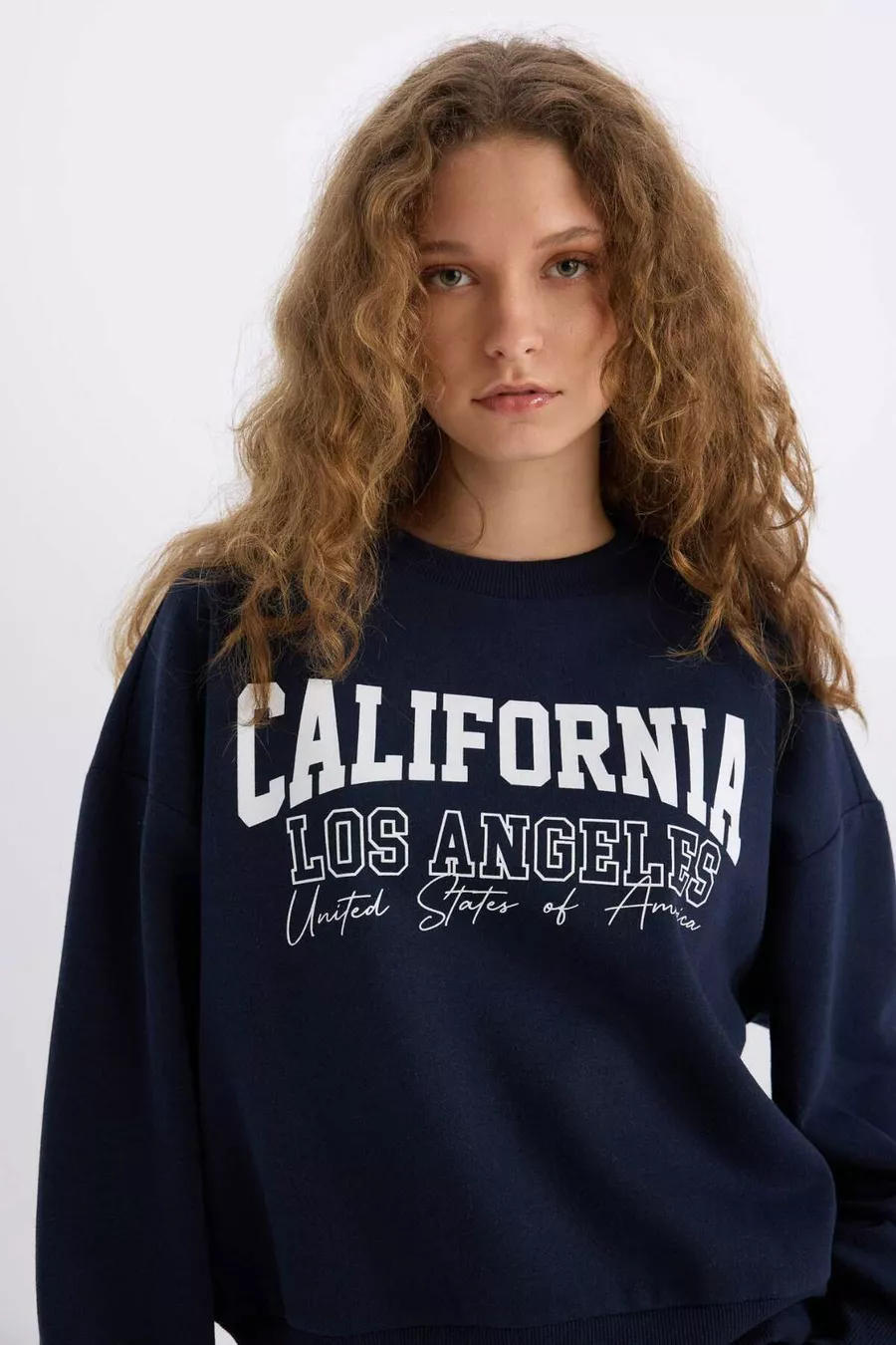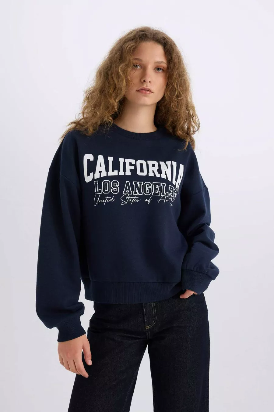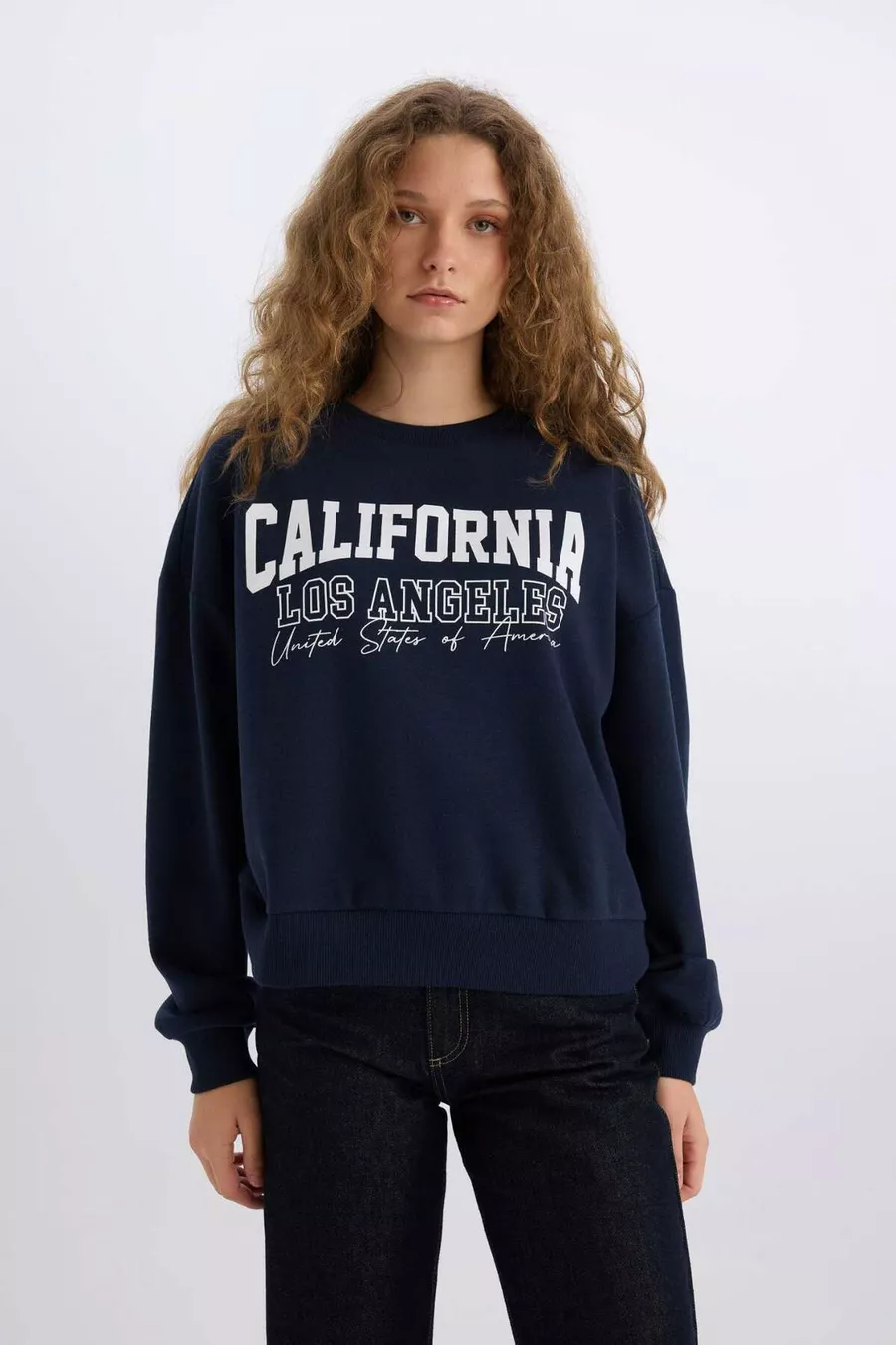 Loose Fit Bisiklet Yaka Baskılı Kalın Sweatshirt AXNS