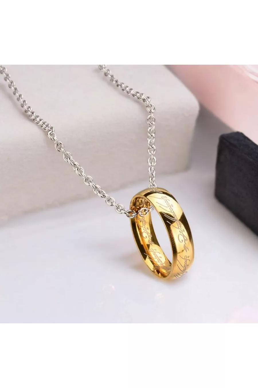 Lord Of The Rings Altın Kaplama Sırlar Yüzüğü Kolye Yüzüklerin Efendisi Frodo Yüzüğü % Çelik