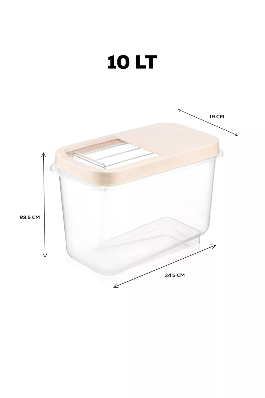 Lt Bakliyat Saklama Kabı - Kayar Kapaklı Erzak Saklama Kabı Un Kabı Krem
