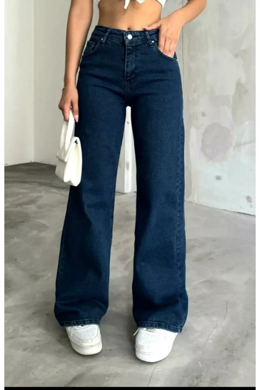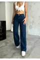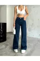 Luiss Lacivert Likralı Süper Yüksek Bel Salaş Jeans Palazzo Pantolon. (süper Yüksek)