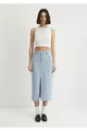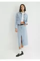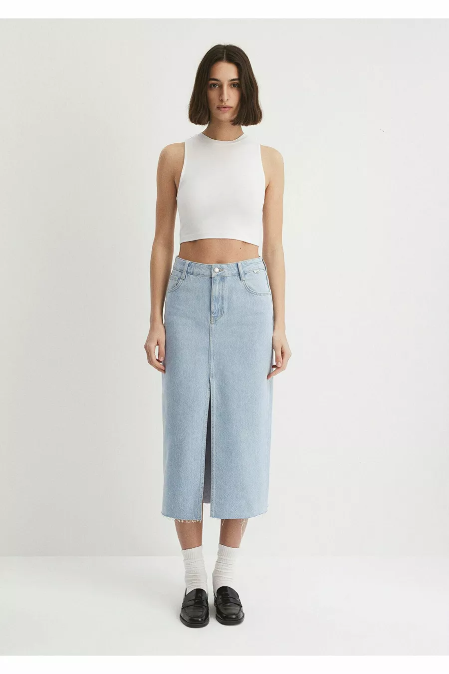 Quenmadam nin denim koleksiyonundan Marin Quenmadam Premium Buz Quenmadam Jean Etek. Önden yırtmaçlı uzun Jean Etek. Standart Yüksek Bel Manken ölçüsü: Boy:180 cm / Bel:63 cm / Göğüs:80 cm / Kalça:90 cm Kumaş Tipi:Dokuma Gender:Kadın Fit:Standart Sleeve:Standart Waist:Yüksek Bel