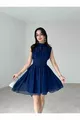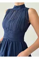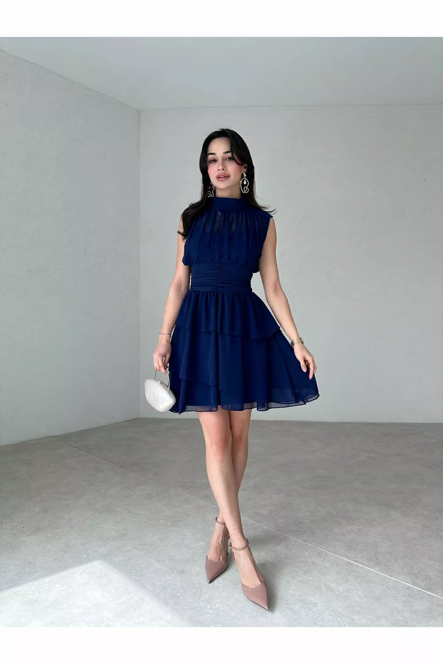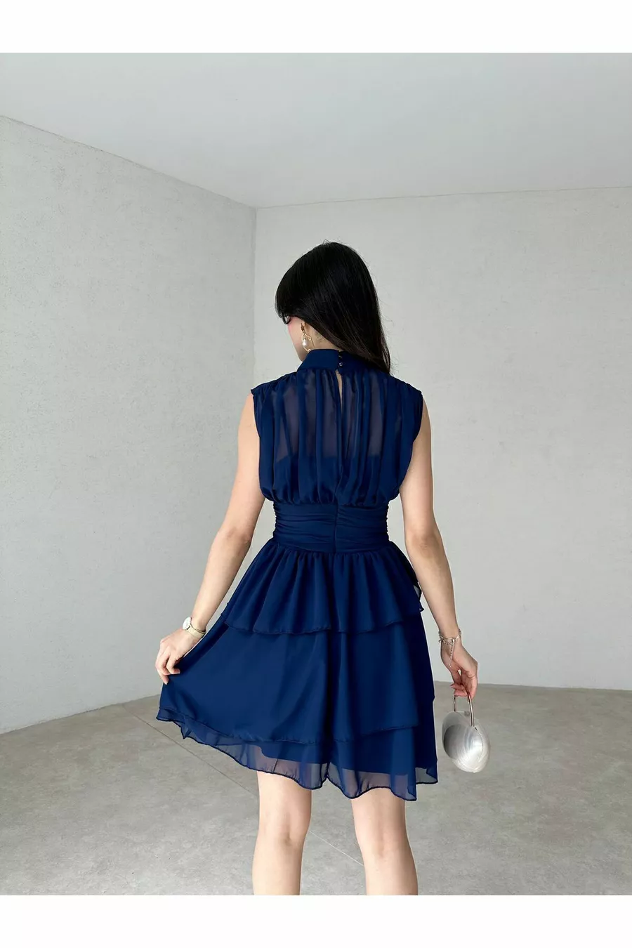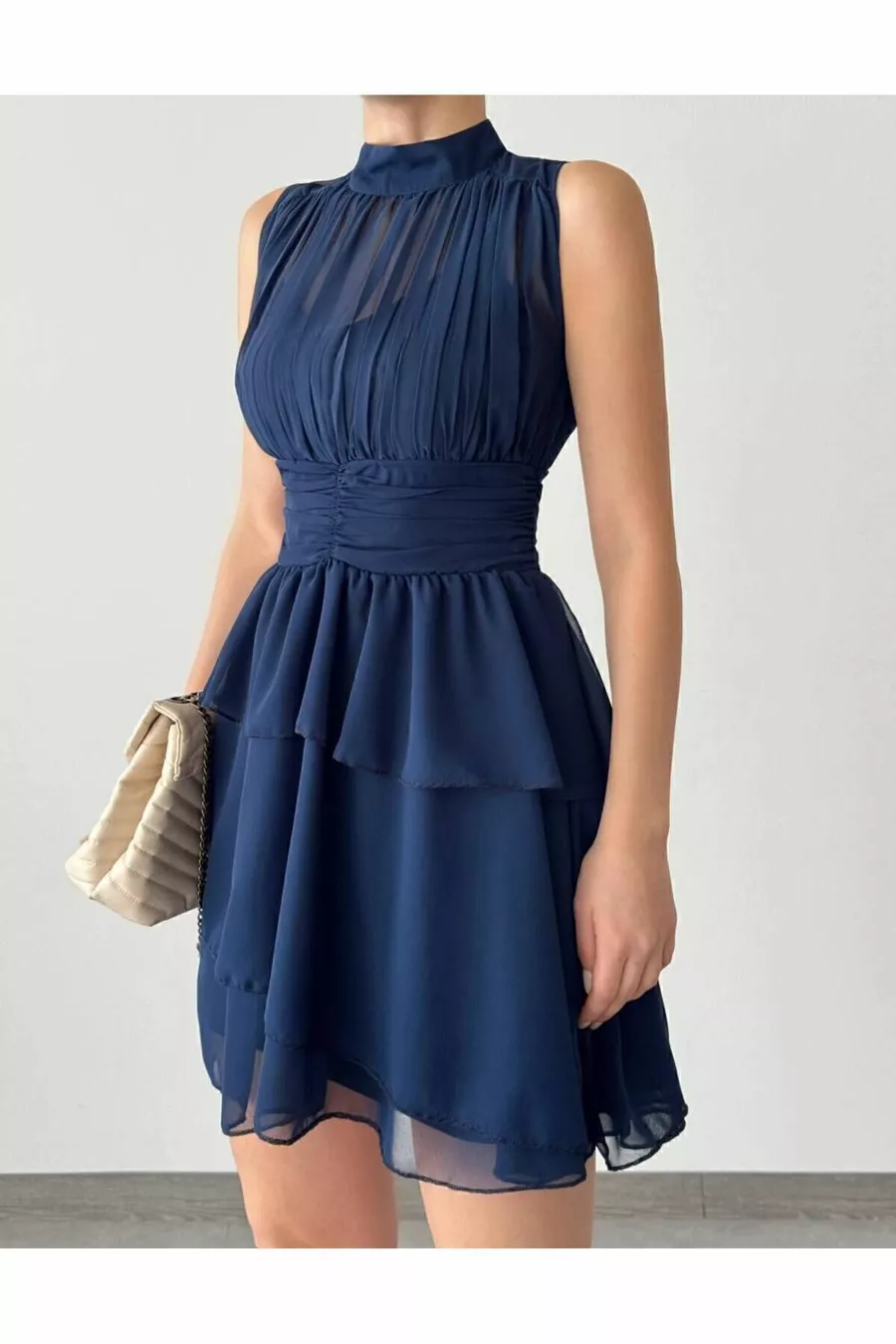 Massimo Model Drapeli,dik Yaka,kolsuz,mini,fermuar Kapamalı,şifon,etek Çapraz Kesim Detaylı Elbise