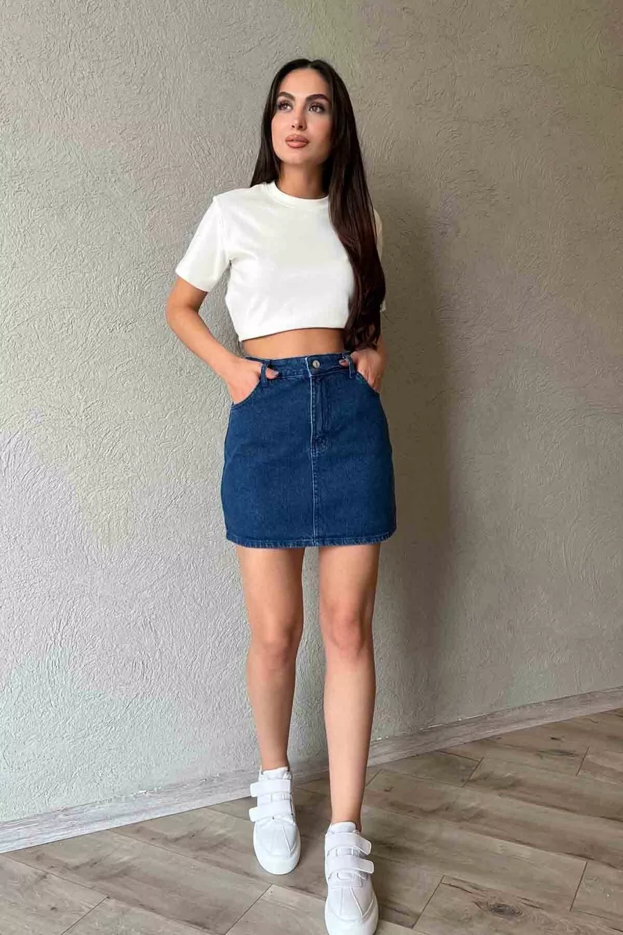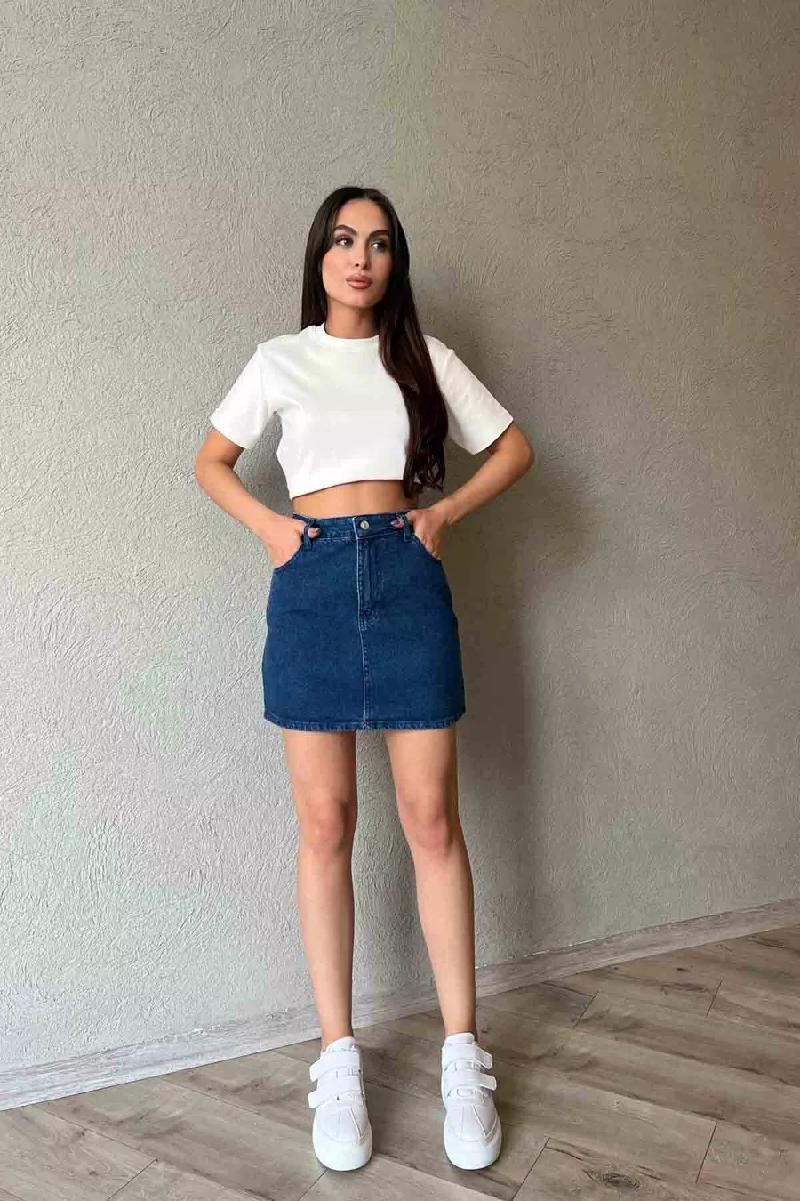 Mavi Cep Detaylı Mini Denim Etek Model Boy: 168 cm Model Kilo: 54 kg Model Göğüs: 80 cm Model Bel: 65 cm Model Basen: 95 cm Ürün Ölçüleri