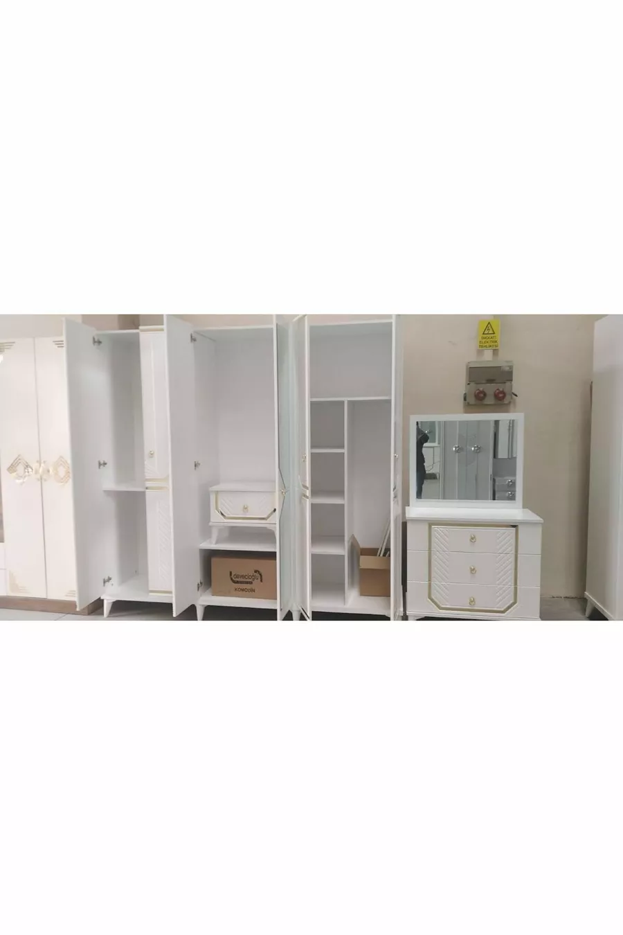 Renk:BejGaranti Süresi:2 YılKaryola/Baza Ölçüsü:150 x 200Karyola Fonksiyonu:BazalıDolap Fonksiyonu:AynalıGardırop Gövde Materyali:MDFKapak Sayısı:6Set İçeriği:Karyola + 2 Komodin + Şifonyer + Yatak + GardıropStil:ModernTema / Stil:ModernÖzellik:Ayaklı