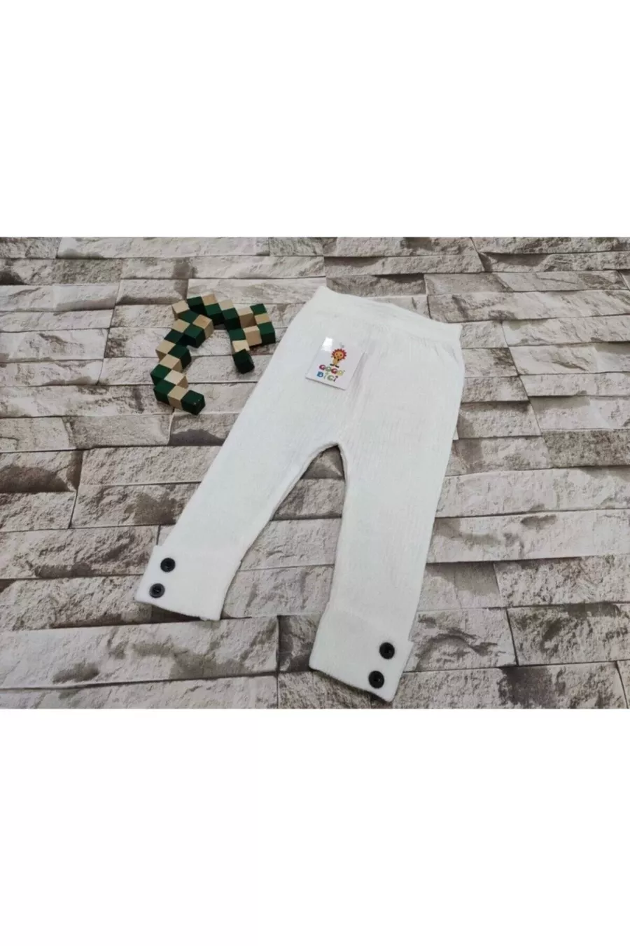 Meriç Bebe Düğme Detaylı Fitilli Bebek Triko Tayt