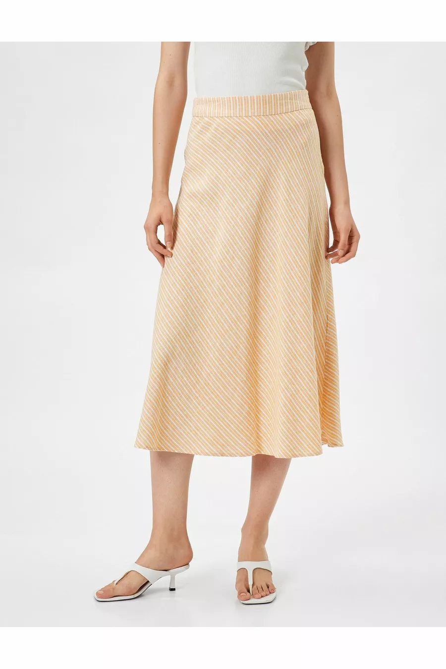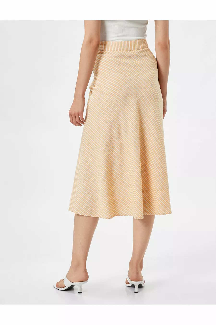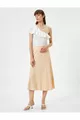 Midi Etek A Kesim Normal Bel Fermuarlı Keten Karışımlı