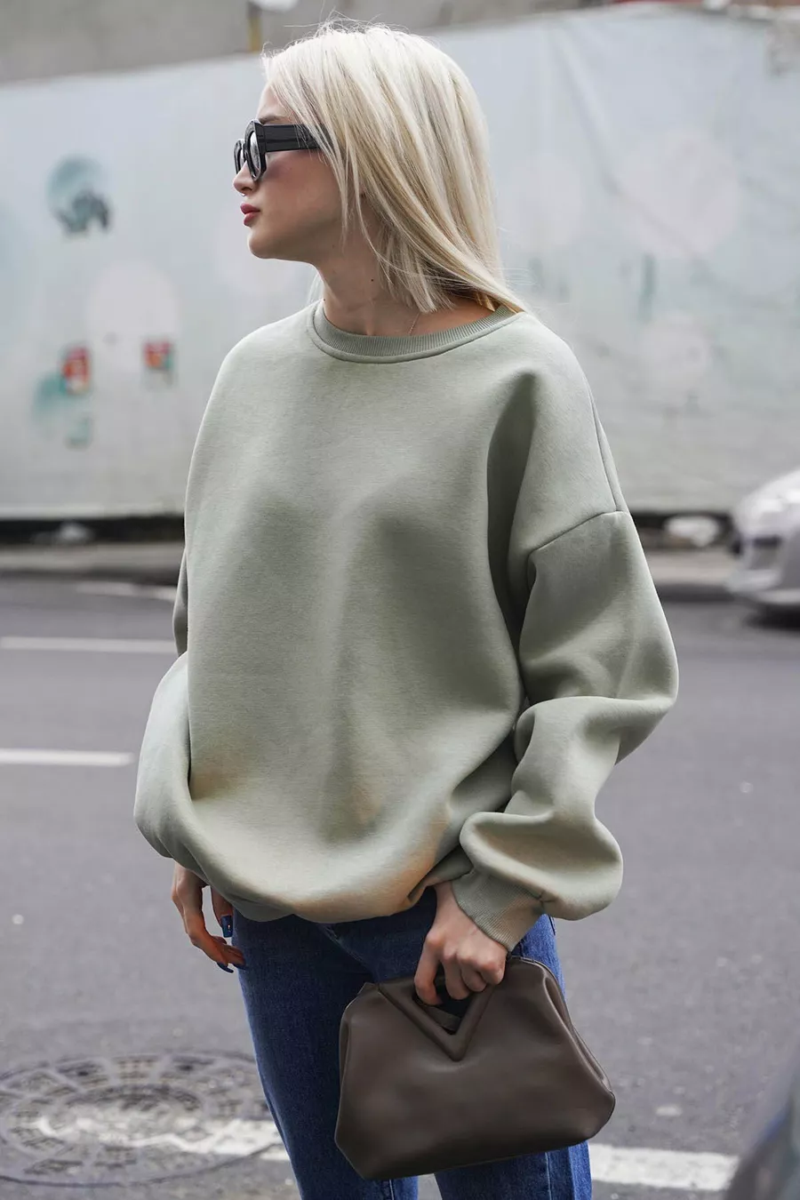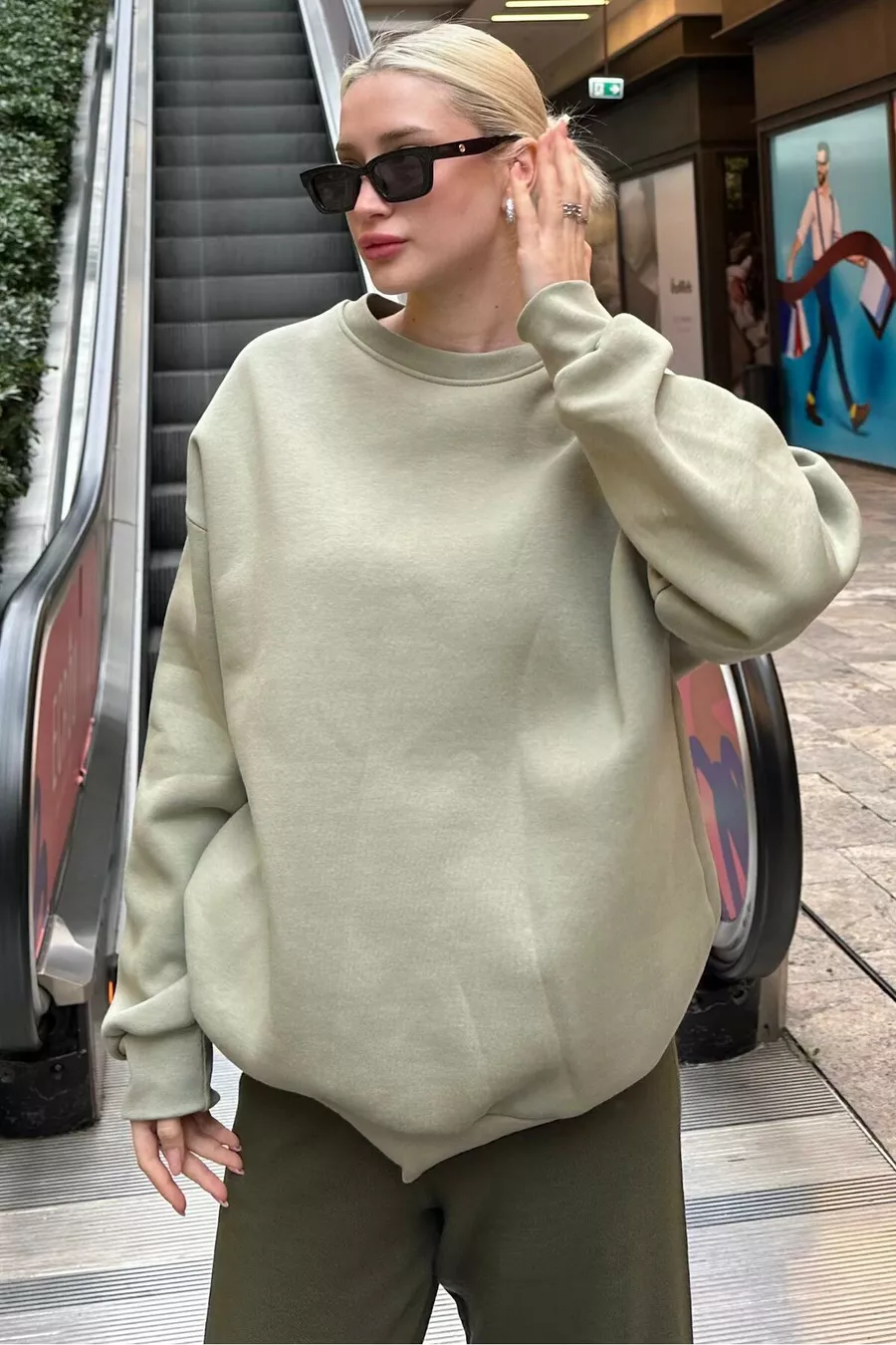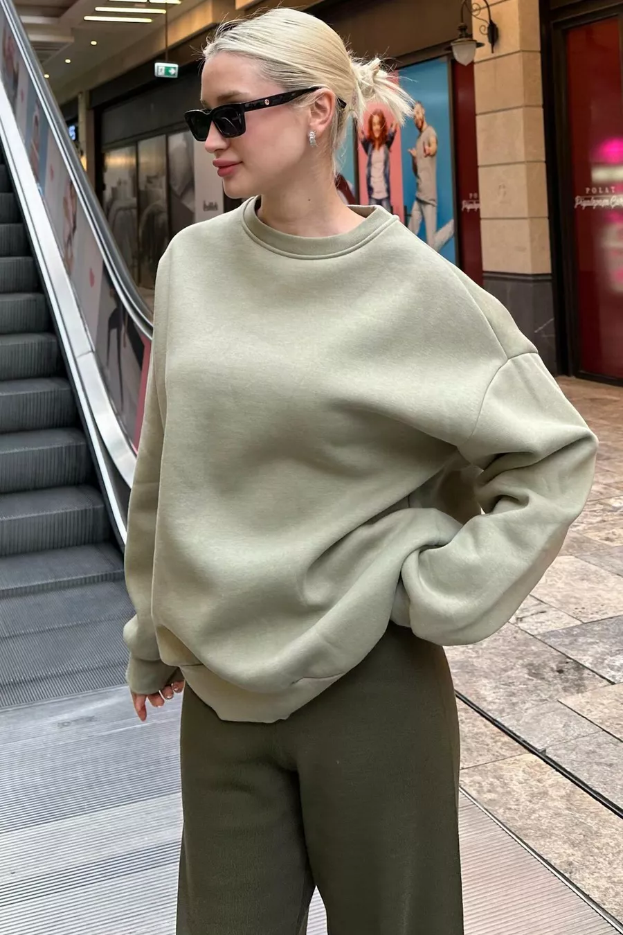Mint Yeşili Bisiklet Yaka Basic Sweatshirt