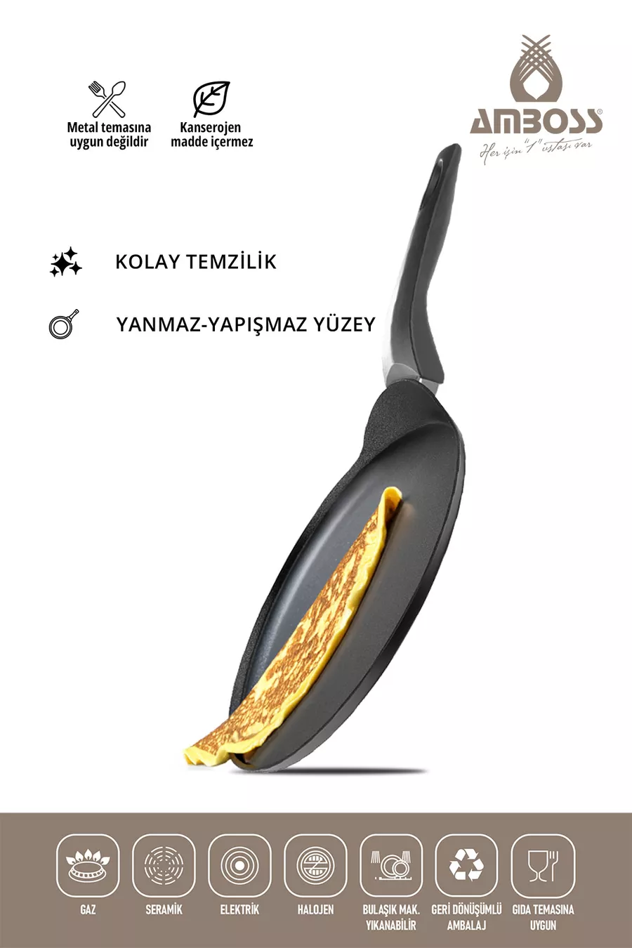 Boyut/Ebat:30 cmParça Sayısı:1 ParçaÖzellik:Yapışmaz TabanÜrün Tipi:Krep TavaDış Materyal:Belirtilmemişİç Materyal:TitanyumRenk:SİYAHMenşei:TRMateryal:TitanyumRenk:Siyah