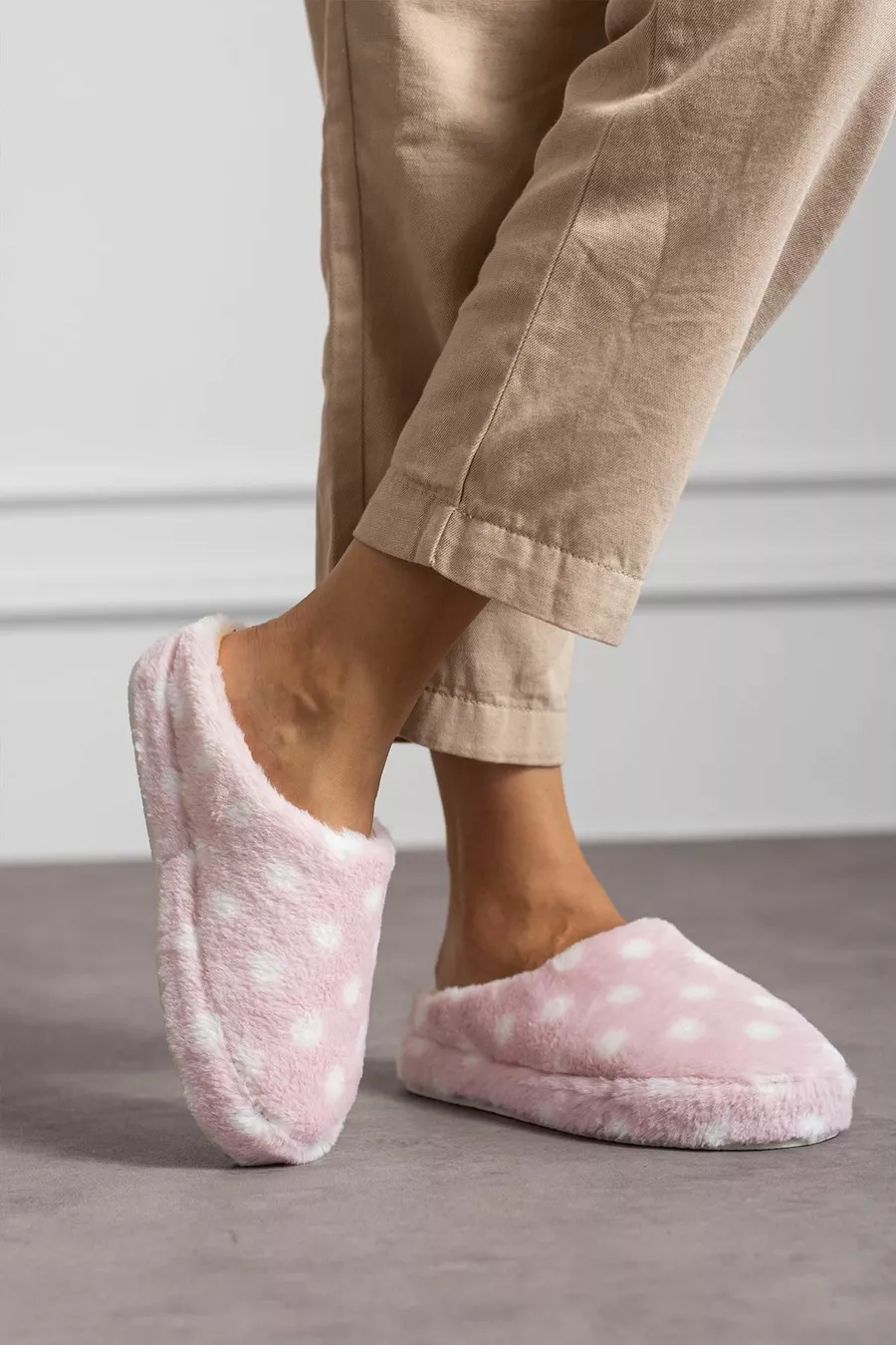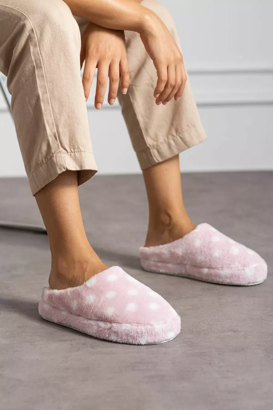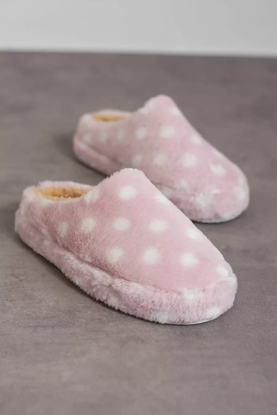 Modafrato PUANLI PELUŞ Kadın Ev Terliği Kışlık Terlik Sessiz Taban