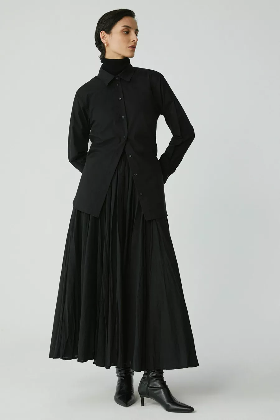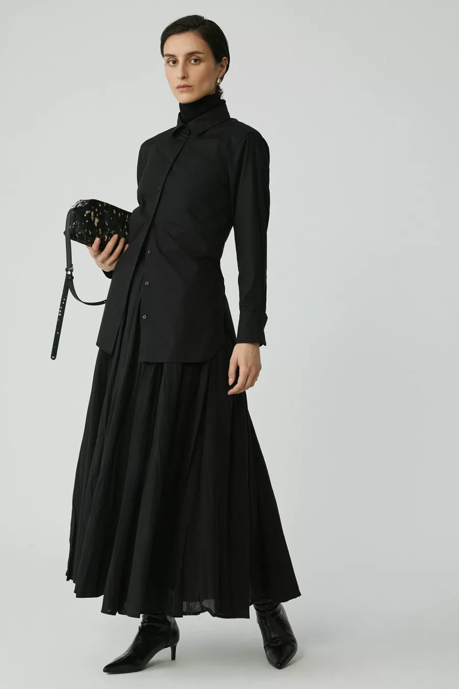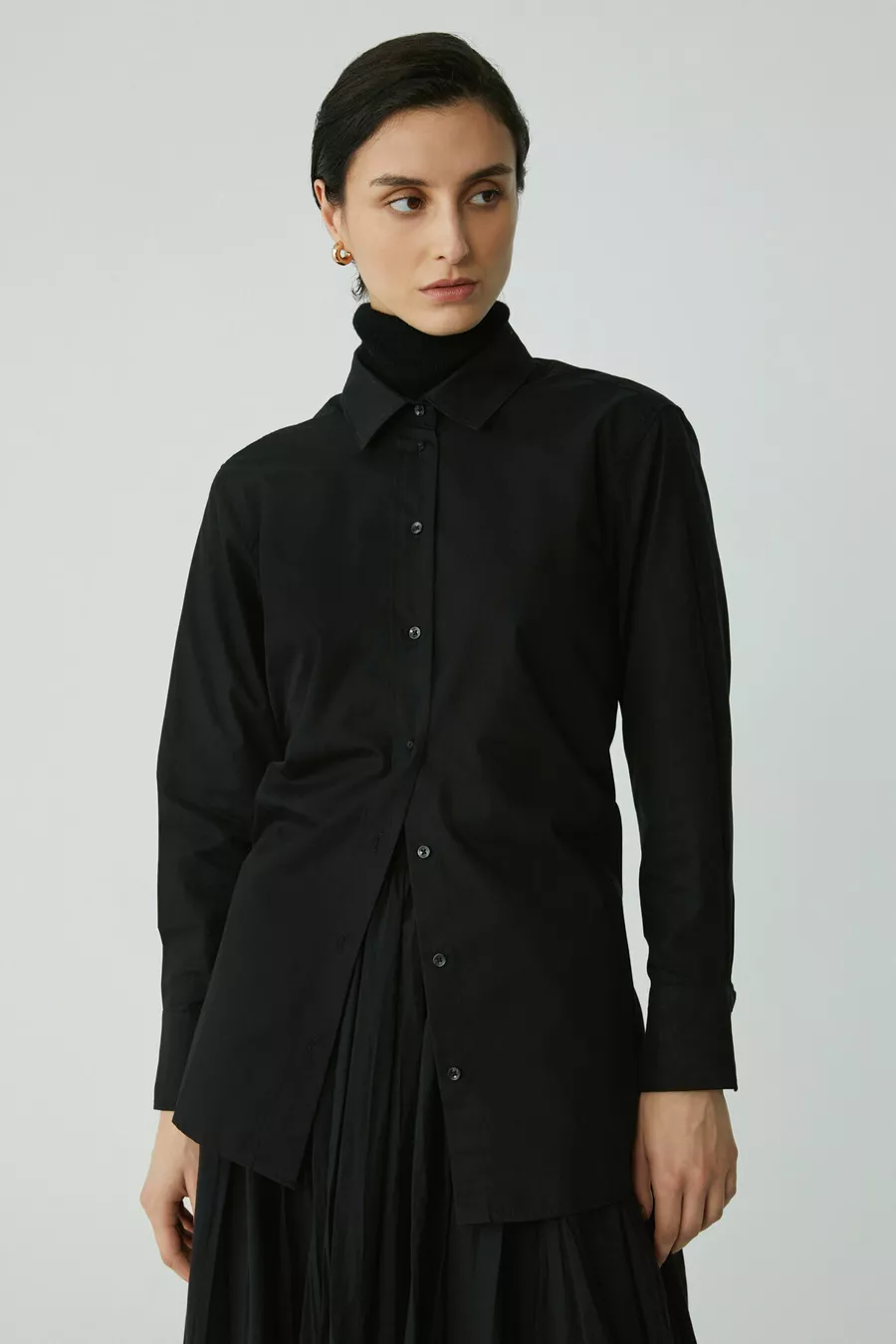 Modest Amarabb Kadın % Organik Pamuk Oversize Fit Poplin Manşetli Siyah Büyük Beden Gömlek