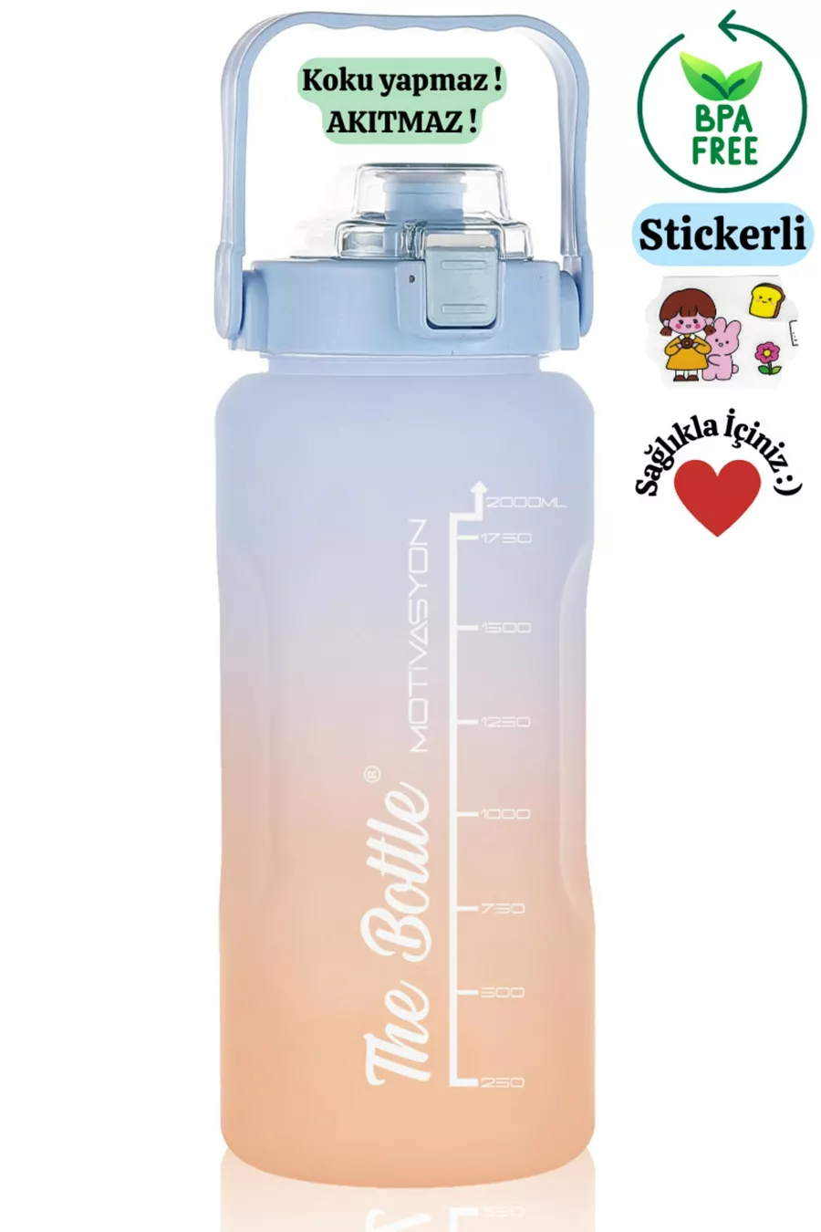 Motivasyonel Su Matarası Pipetli Stickerli Su Şişesi Suluk ml (2lt) Bpa Içermez Spor Salonu