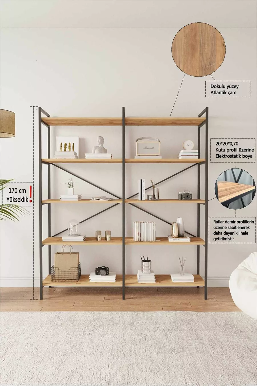 Tip:KlasikMateryal:SuntalamRenk:KahverengiYükseklik:170 cmGenişlik:150 cmDerinlik:34 cmRaf Sayısı:5Gövde Materyali:SuntalamStil:İskandinavTema / Stil:İskandinavÖzellik:Raflı