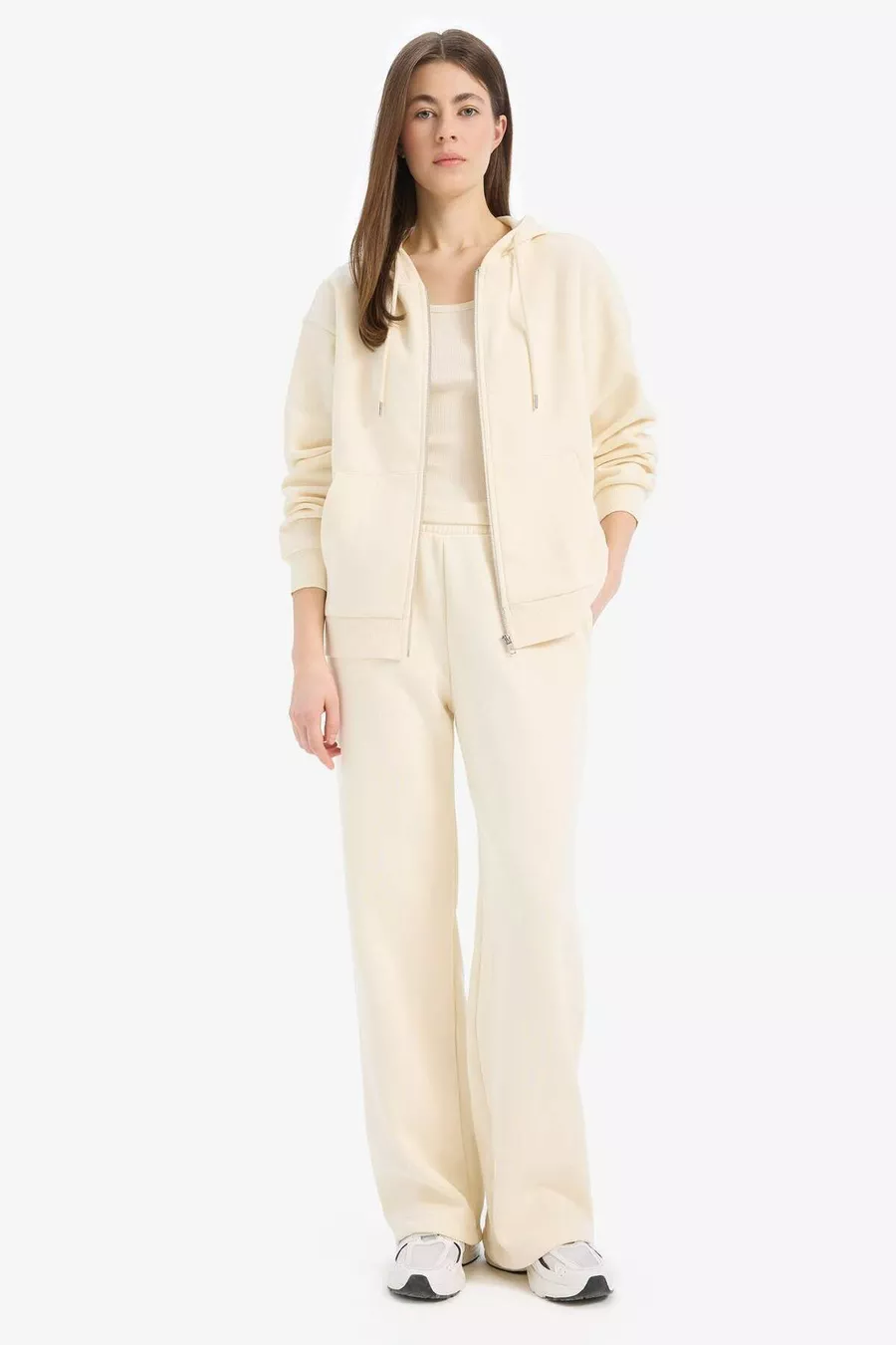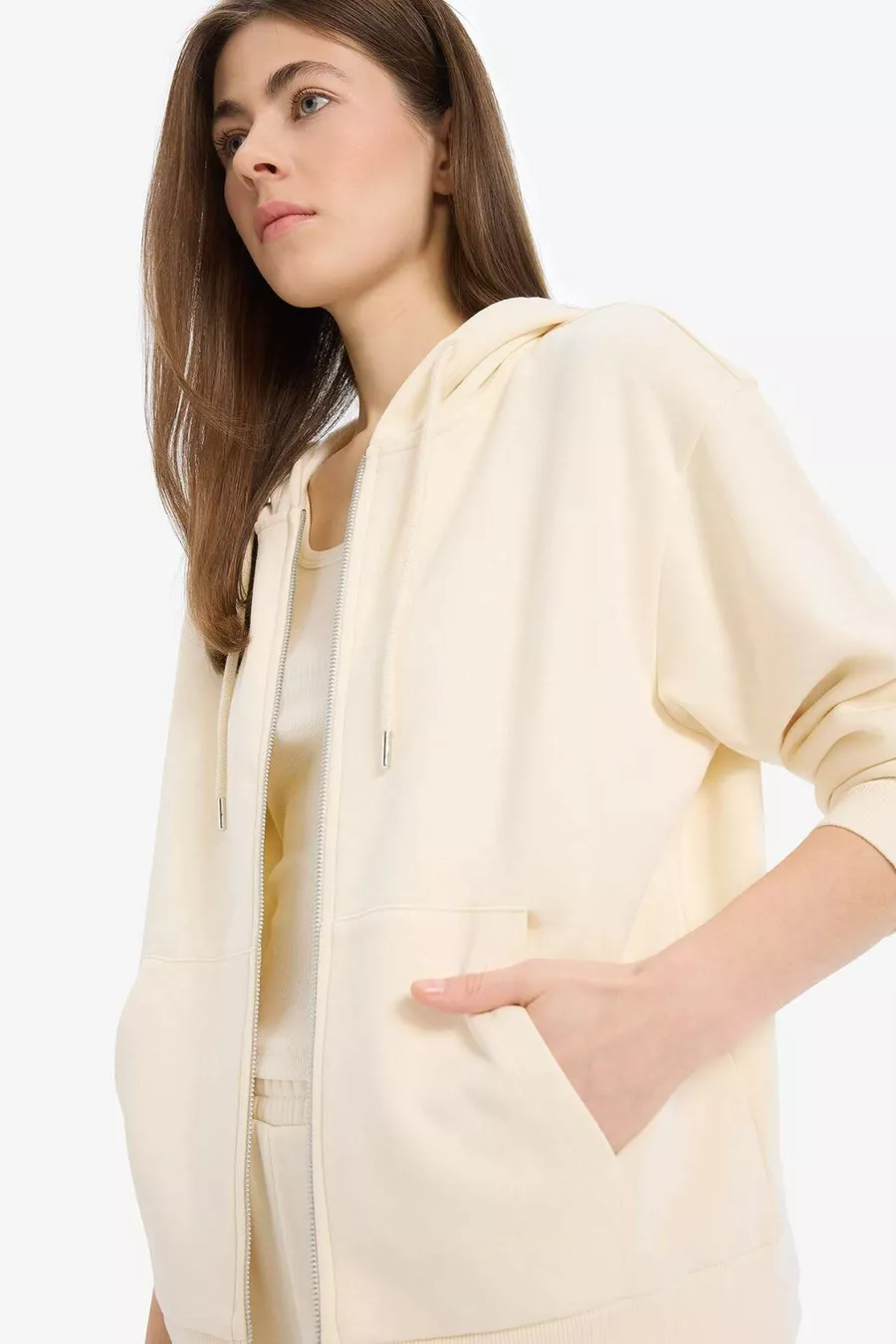 Okul Relax Fit Kapüşonlu Cepli Basic Düz Fermuarlı Sweatshirt WN