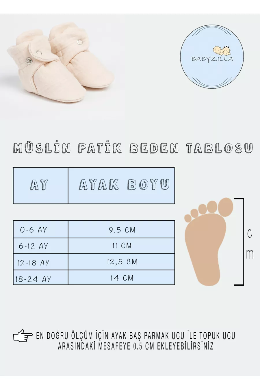 Organik Pamuk Müslin Bebek Patiği, Yenidoğan Yazlık Panduf