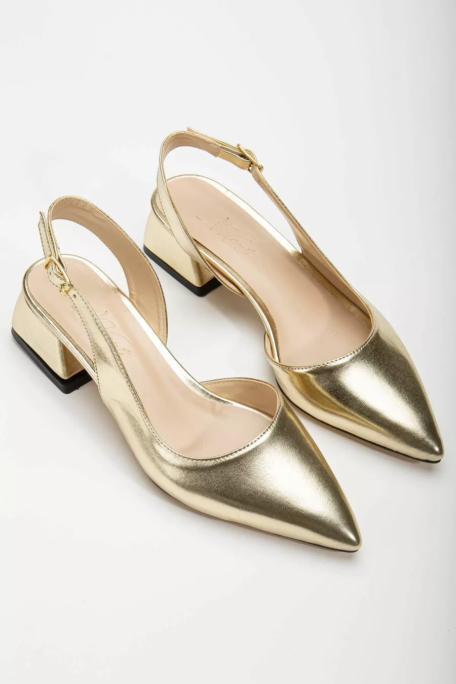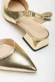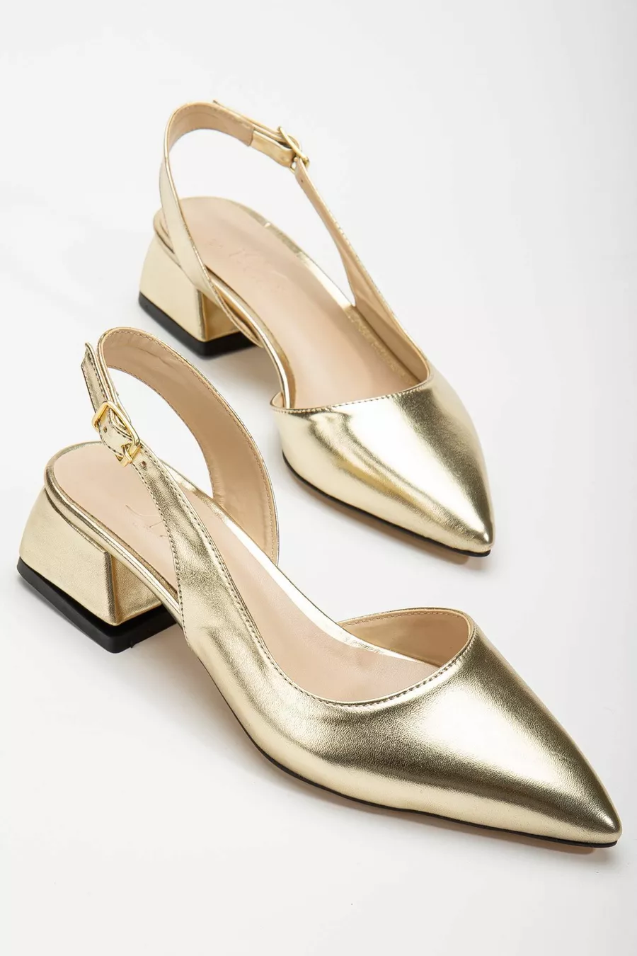 "Renk: Gold Detay: Topuklu Malzeme: Cilt Topuk Boyu:3,5 cm Taban Materyali: Neolit Jurdan Taban İç Taban: Padli İç Taban Kalıp: Standart Ayak Ölçülerine Göre Tam Kalıp"