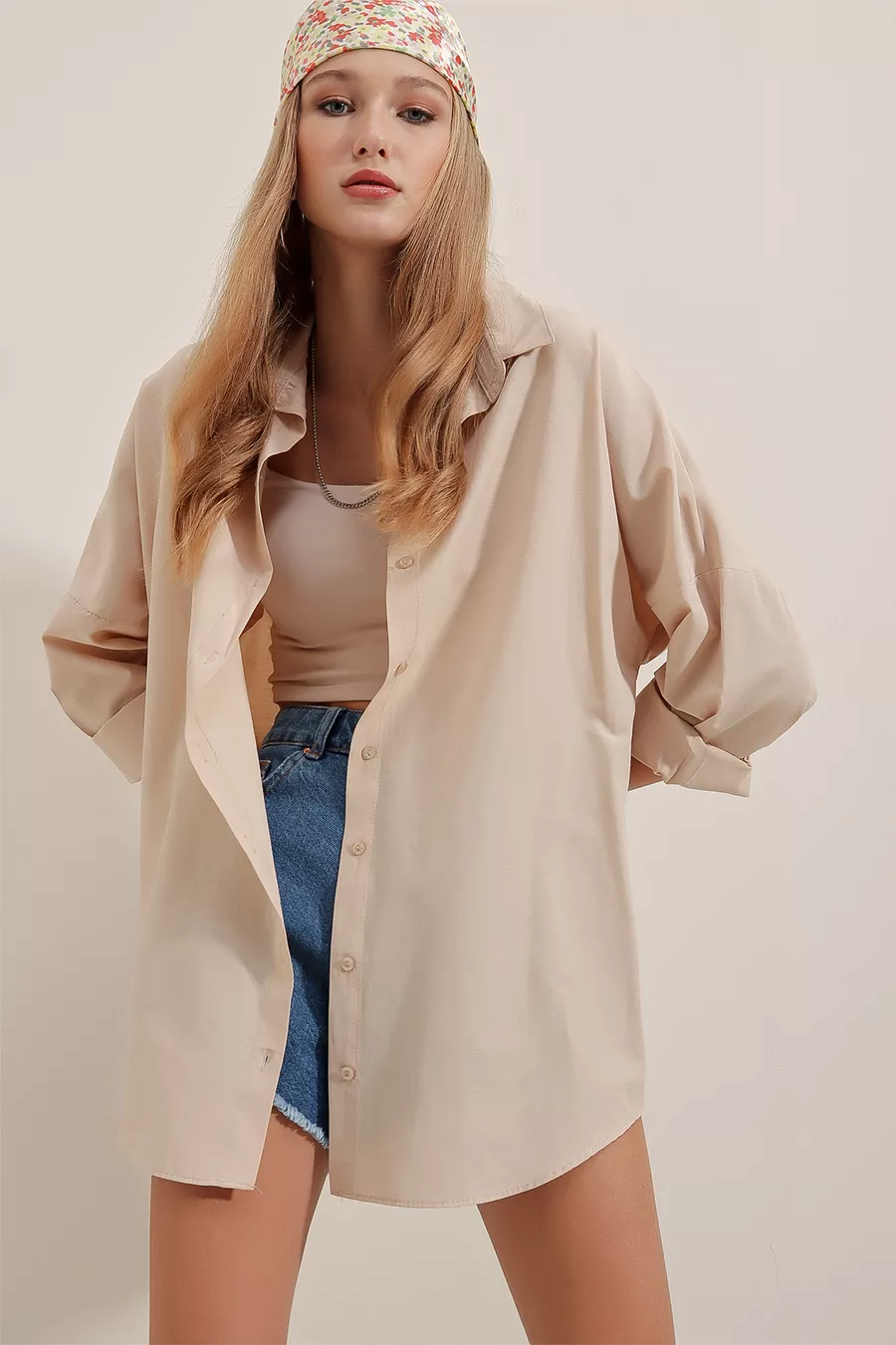 Oversize Uzun Basic Gömlek - Krem