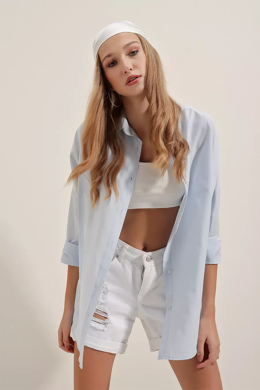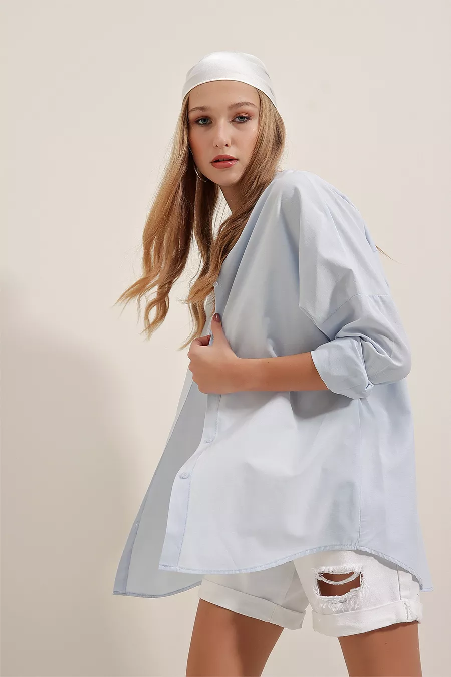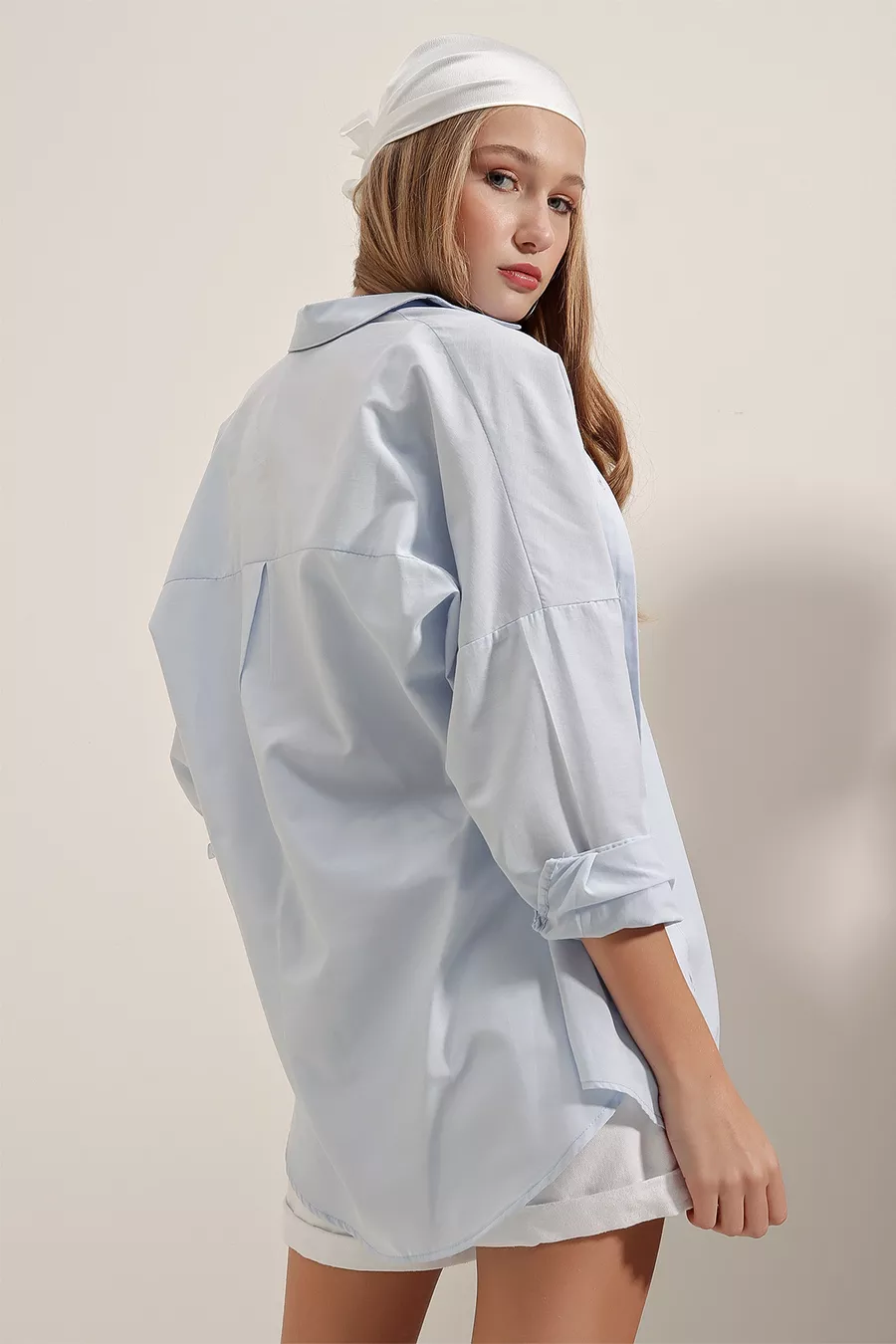Oversize Uzun Basic Gömlek - Açık Mavi