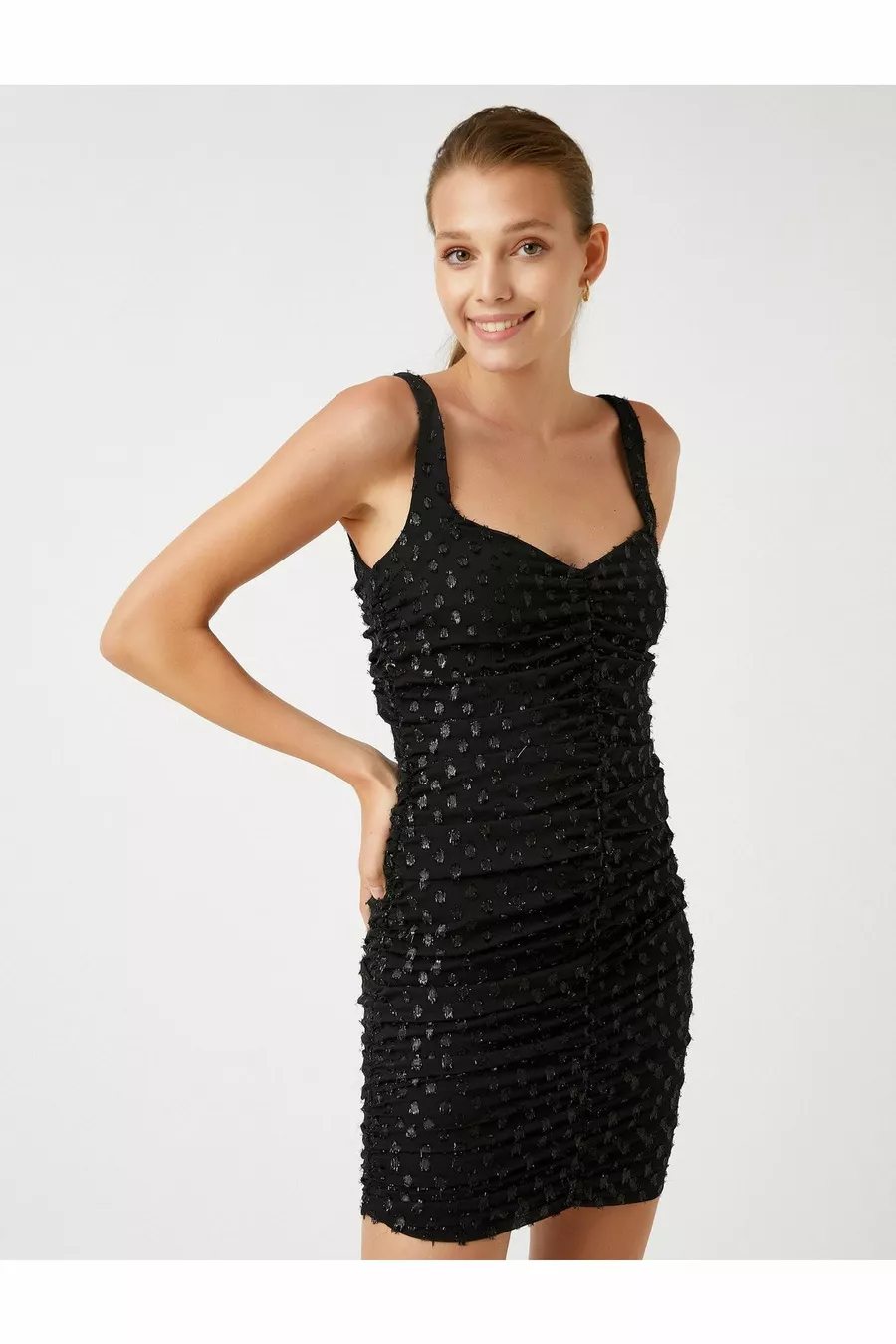 Davetler için zarif ve şık elbiseler her zaman idealdir. Pırıltılıkalp yakaaskılımini elbise ile gecenin yıldızı siz olun!