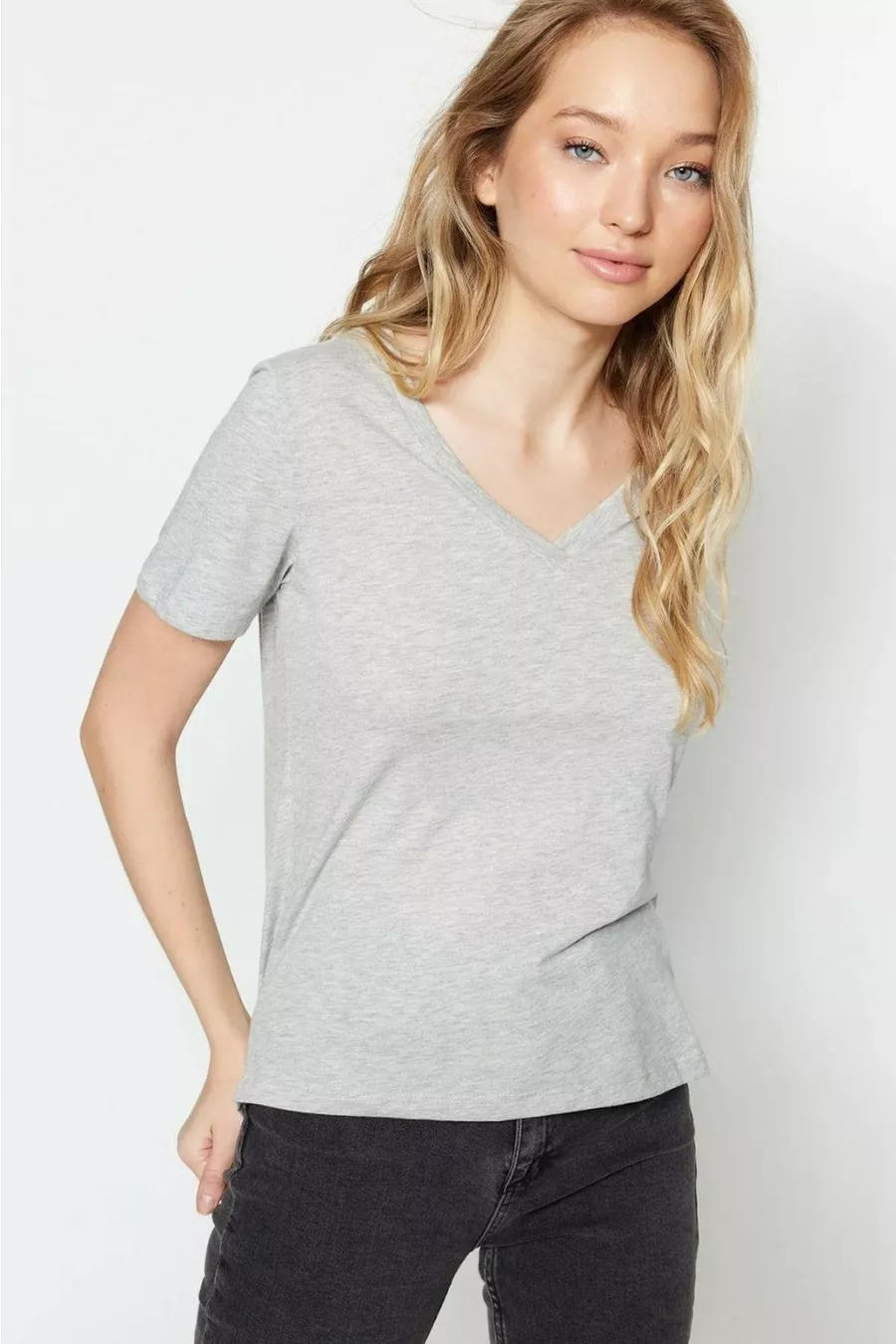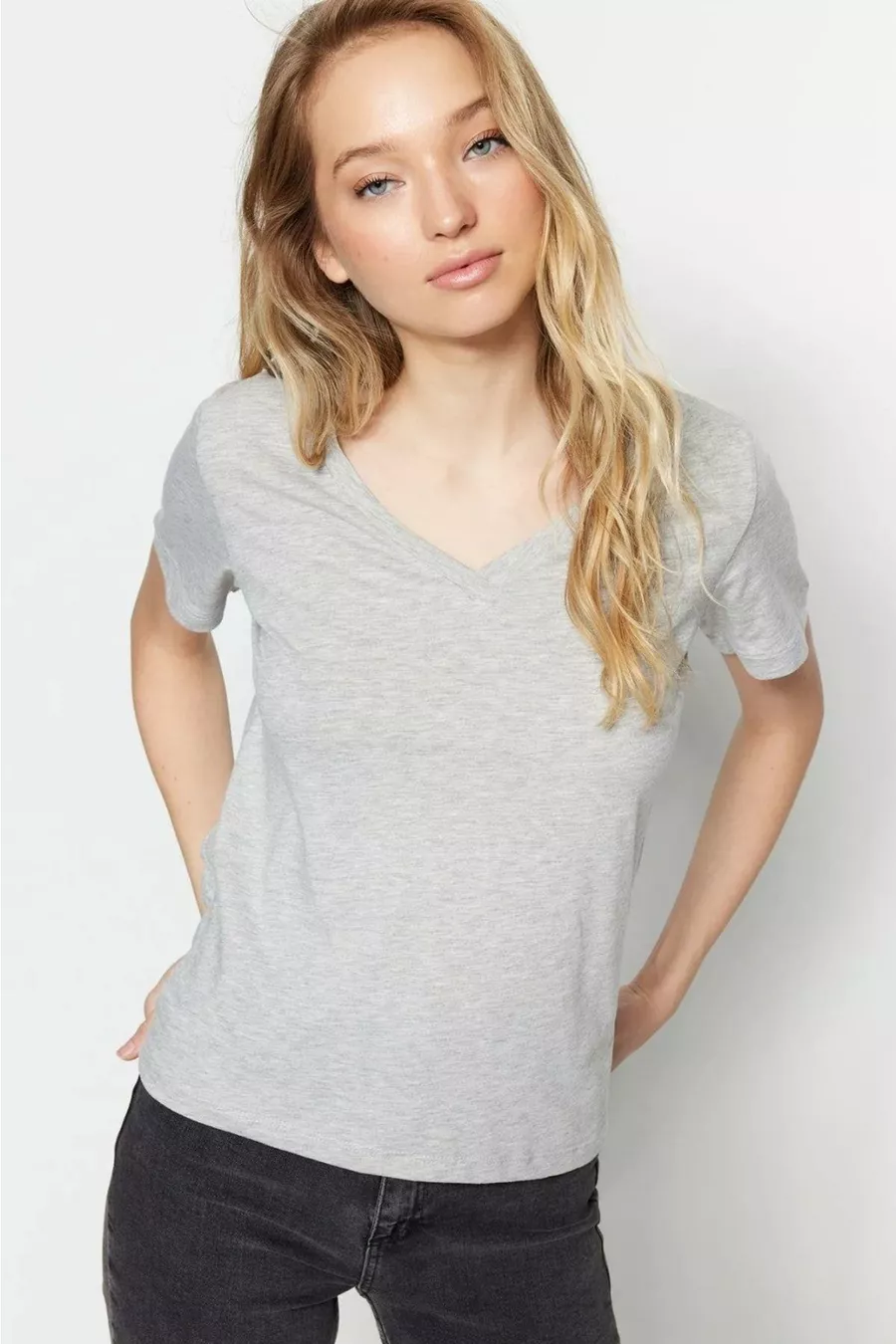 Desen:Düz Kalıp:Relaxed Yaka Tipi:V Yaka Materyal:%100 Organik Pamuk Kumaş Tipi:Örme Kol Tipi:Kısa Kol Renk:Gri Paket İçeriği:Tekli Teknik:Yok Cep:Cepsiz Kol Boyu:Kısa Koleksiyon:Basic Boy:Regular Ortam:Casual/Günlük Ek Özellik:Ek Özellik Mevcut Değil Baskı/Nakış Tekniği:Baskısız Sürdürülebilirlik Detayı:Organik Dokuma Tipi:30/1 penye süprem Siluet:Basic Persona:Fashion Forward Materyal Bileşeni:100% Organik Pamuk Yıkama Talimatı:Ürünün İç Etiketinde Yazan Talimatları Uygulayın Sezon:Yaz Menşei:TR Kutu Durumu:Kutu yok