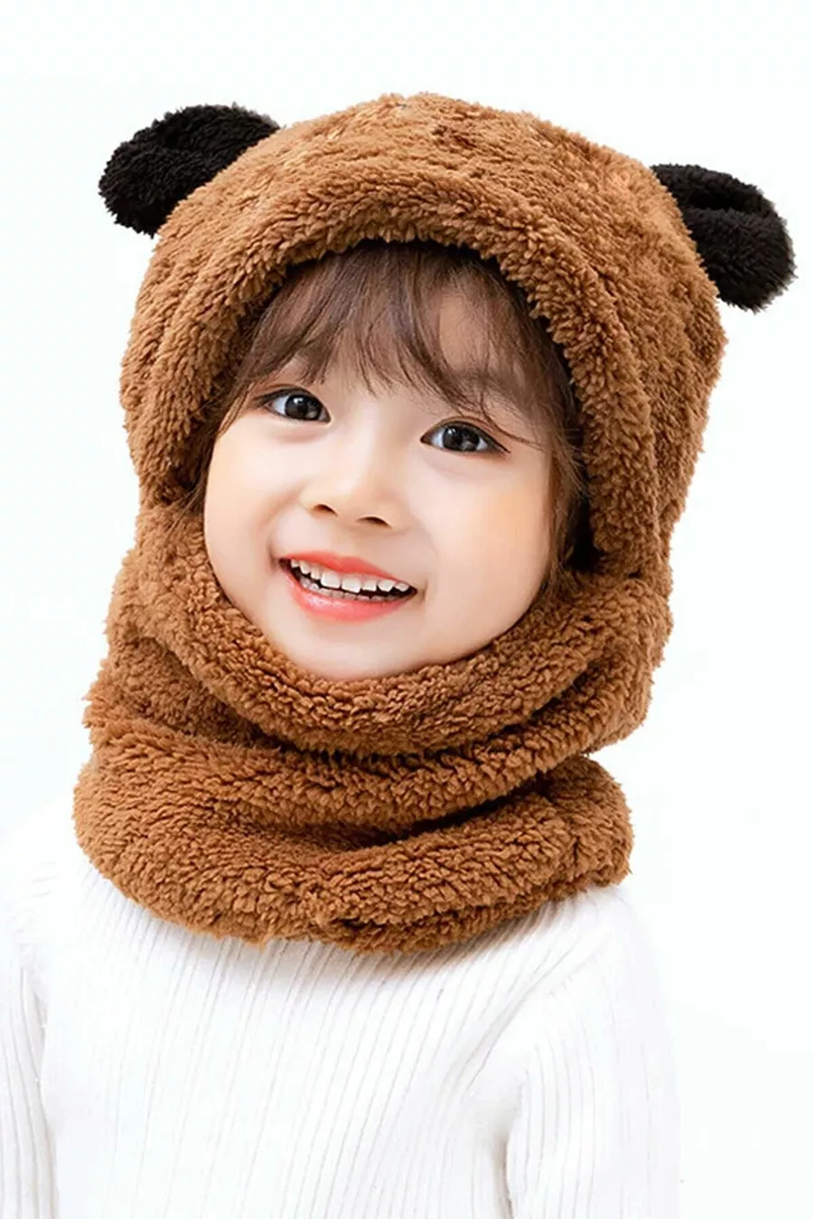 Panda Çocuk Kapşonlu Peluş Bere Atkı Welsoft Boyunluk Rüzgar Geçirmez Kulaklı Şapka