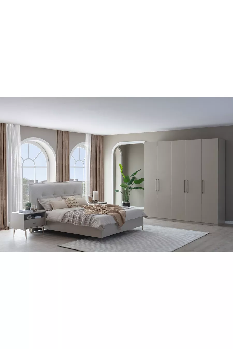 Set İçeriği:Karyola + 2 Komodin + Şifonyer + Gardırop + Ayna