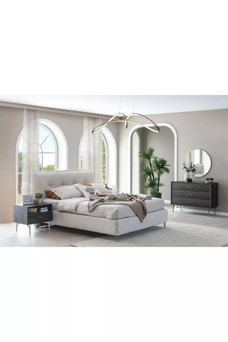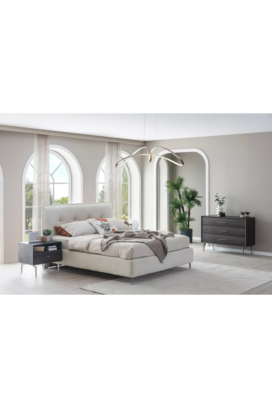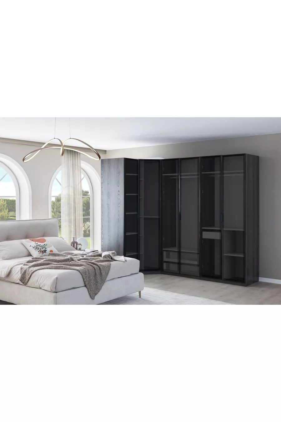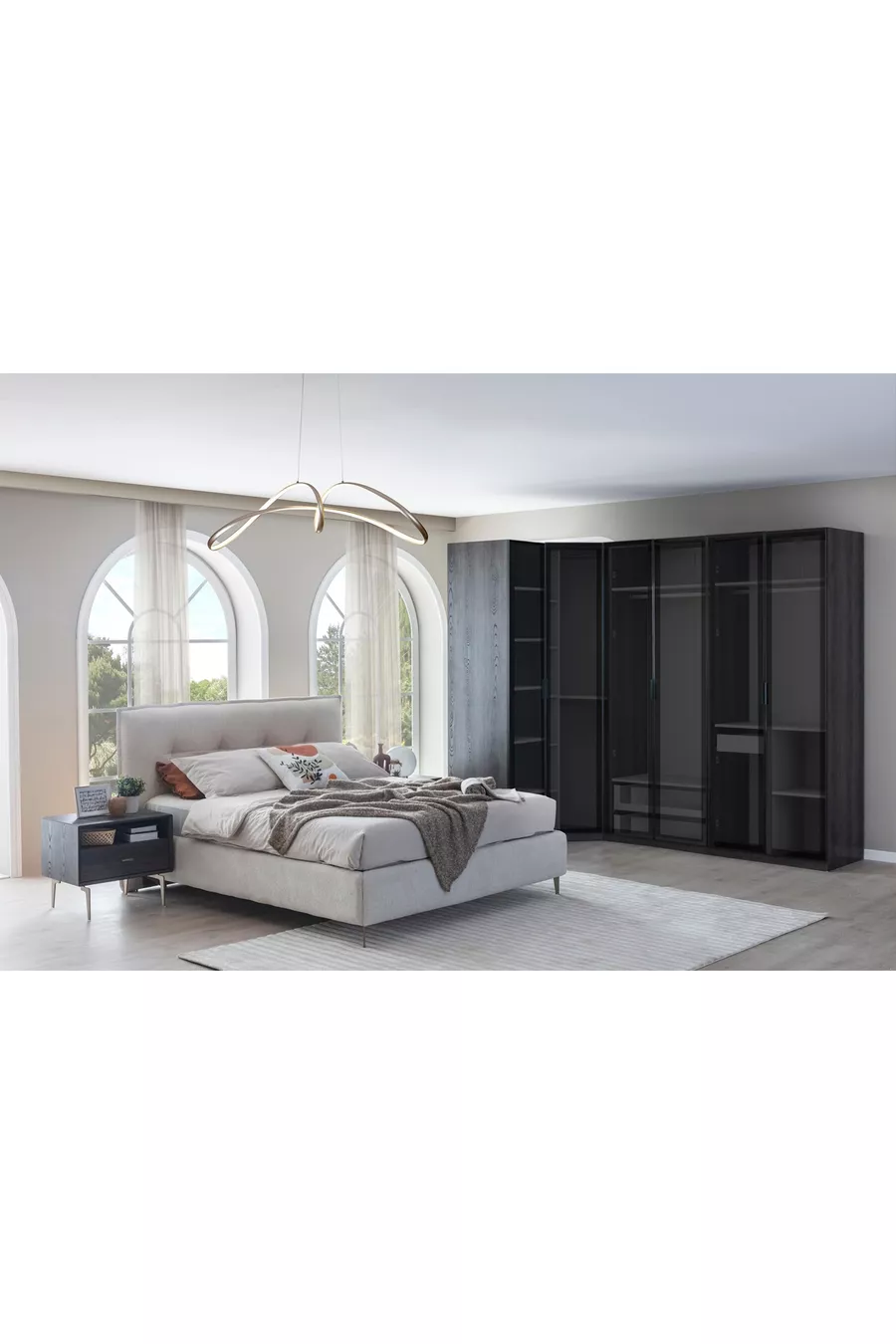 Renk:Çok RenkliKaryola/Baza Ölçüsü:160 x 200Karyola Fonksiyonu:BazalıDolap Fonksiyonu:CamlıGardırop Gövde Materyali:MDFKapak Sayısı:10Set İçeriği:Gardırop + 2 Komodin + Şifonyer + Baza BaşlığıStil:ModernTema / Stil:ModernMenşei:UM