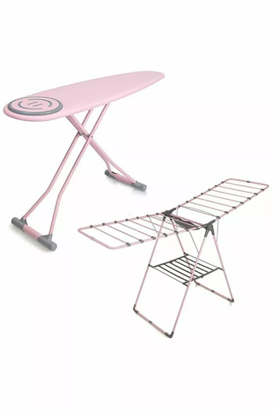 Perilla Premium Ütü Masası - Mandal Sepetli Kurutmalık-pembe Set