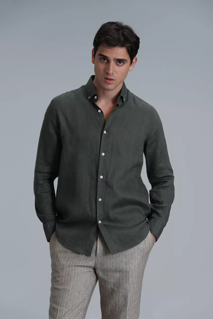 Desen:DüzKalıp:RegularYaka Tipi:Düğmeli YakaKumaş Tipi:DokumaKol Tipi:Uzun KolRenk:HakiMateryal:KumaşKapama Şekli:DüğmeliÜrün Detayı:DüğmeliCep:CepsizKol Boyu:UzunKoleksiyon:BasicBoy:StandartOrtam:Casual/GünlükSiluet:BasicEk Özellik:Serin tutarDokuma Tipi:Keten görünümlüBaskı/Nakış Tekniği:BaskısızPersona:SmartSürdürülebilirlik Detayı:HayırKemer/Kuşak Durumu:KemersizMateryal Bileşeni:belirtilmemişYıkama Talimatı:T09Menşei:TRKutu Durumu:Kutu yok