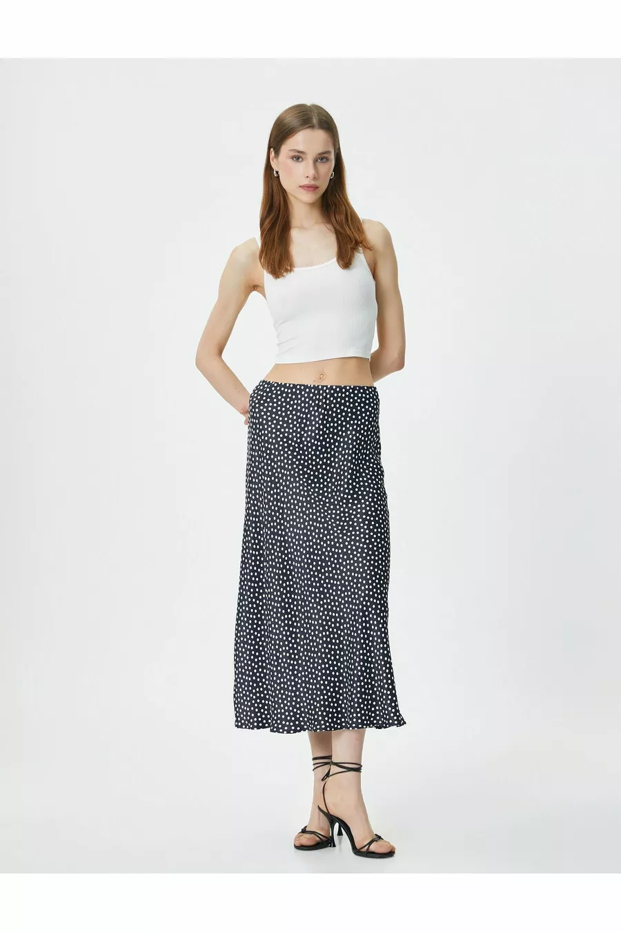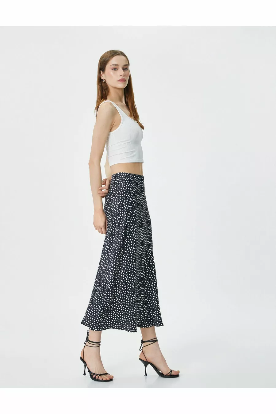 Puantiyeli Midi Etek Viskon