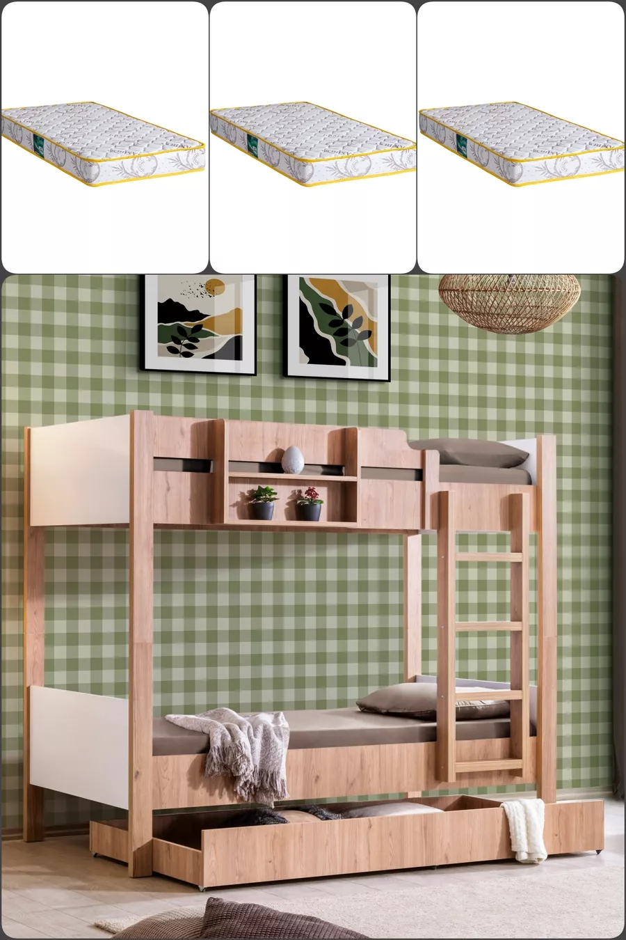 Ranza, Asya Ayrılabilir Yavrulu Ranza, Ceviz - Beyaz + 3 Adet Comfort Yatak