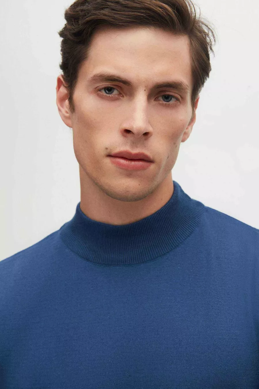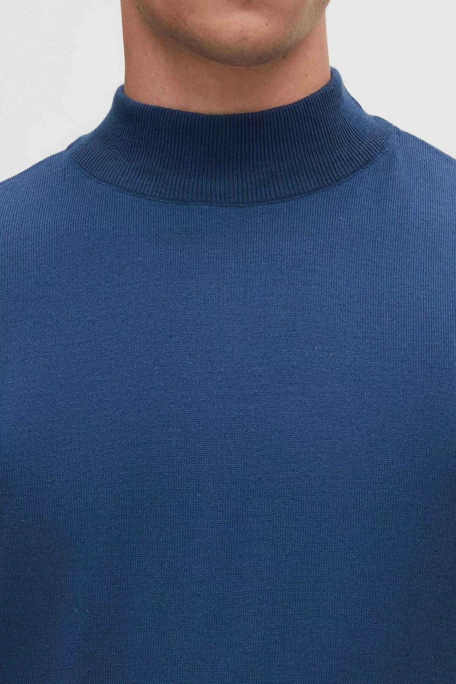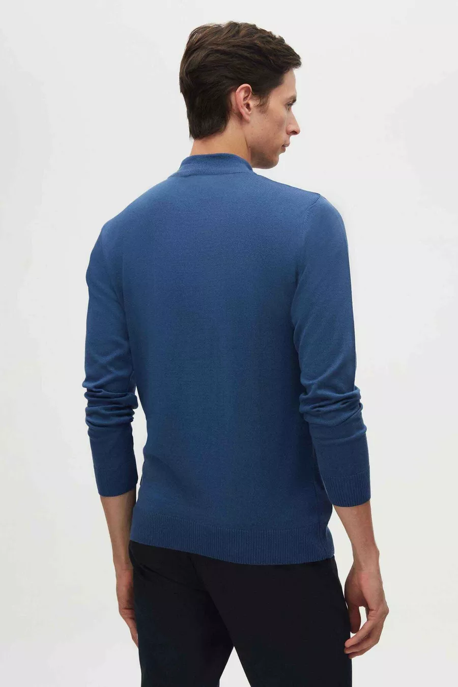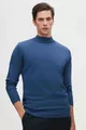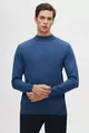 Regular Fit Mavi Pamuk Karışımlı Yarım Balıkçı Triko Kazak