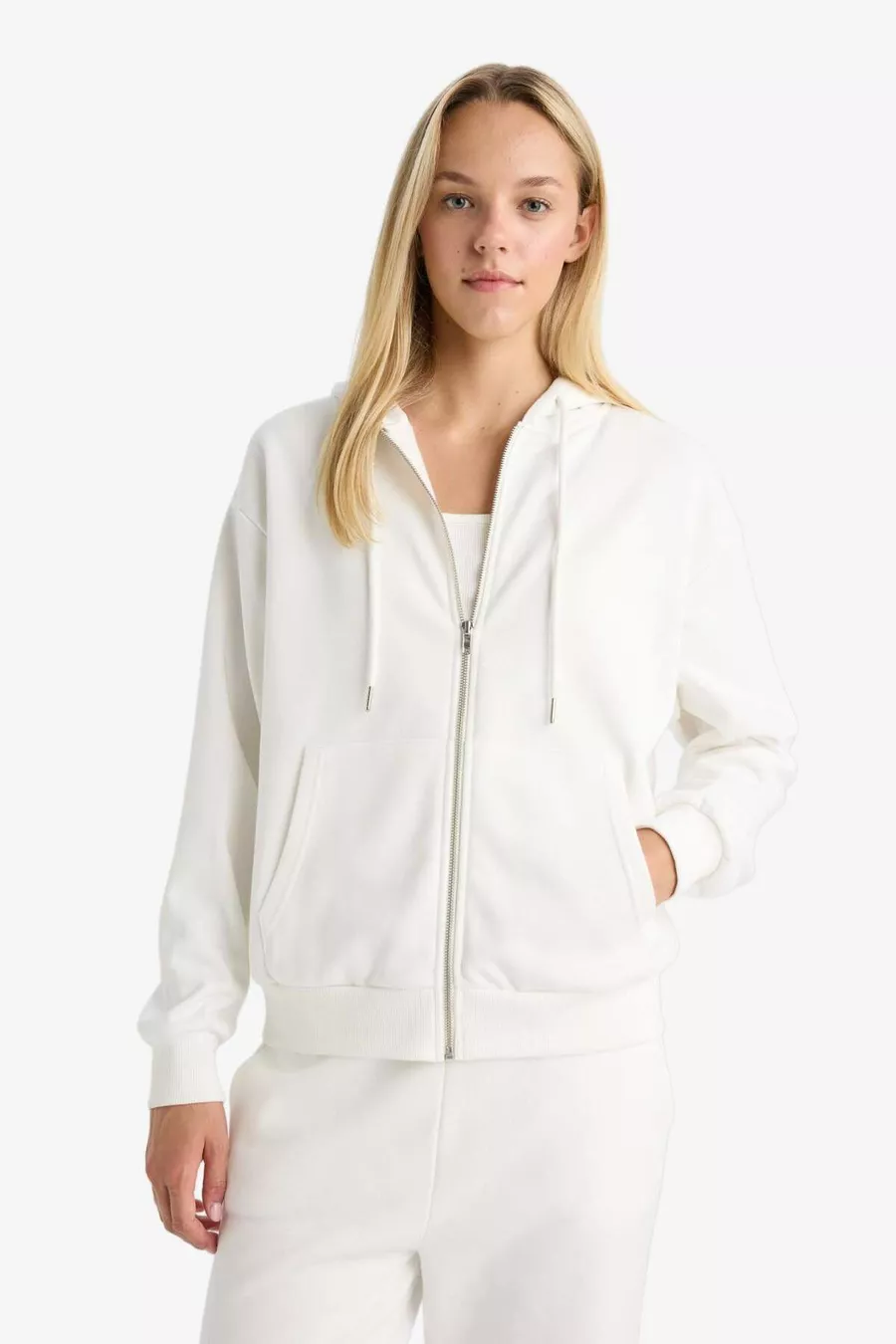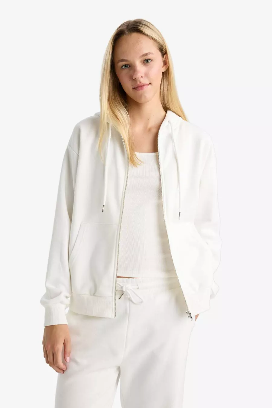 Relax Fit Kapüşonlu Cepli Basic Düz Fermuarlı Sweatshirt WN