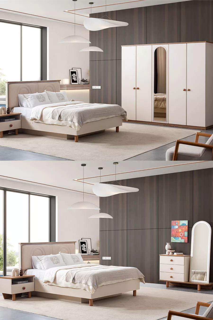 Renk:Çok RenkliGaranti Süresi:2 YılKaryola/Baza Ölçüsü:160 x 200Karyola Fonksiyonu:BazalıDolap Fonksiyonu:AynalıGardırop Gövde Materyali:SuntalamKapak Sayısı:5Set İçeriği:Bazalı Karyola + 2 Komodin + Şifonyer + GardıropStil:ModernTema / Stil:ModernMenşei:TR