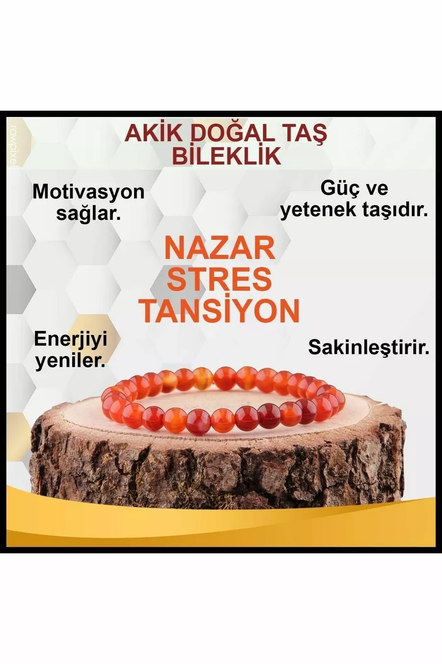 Sertifikalı Akik Doğal Taş Bileklik 6 Mm -