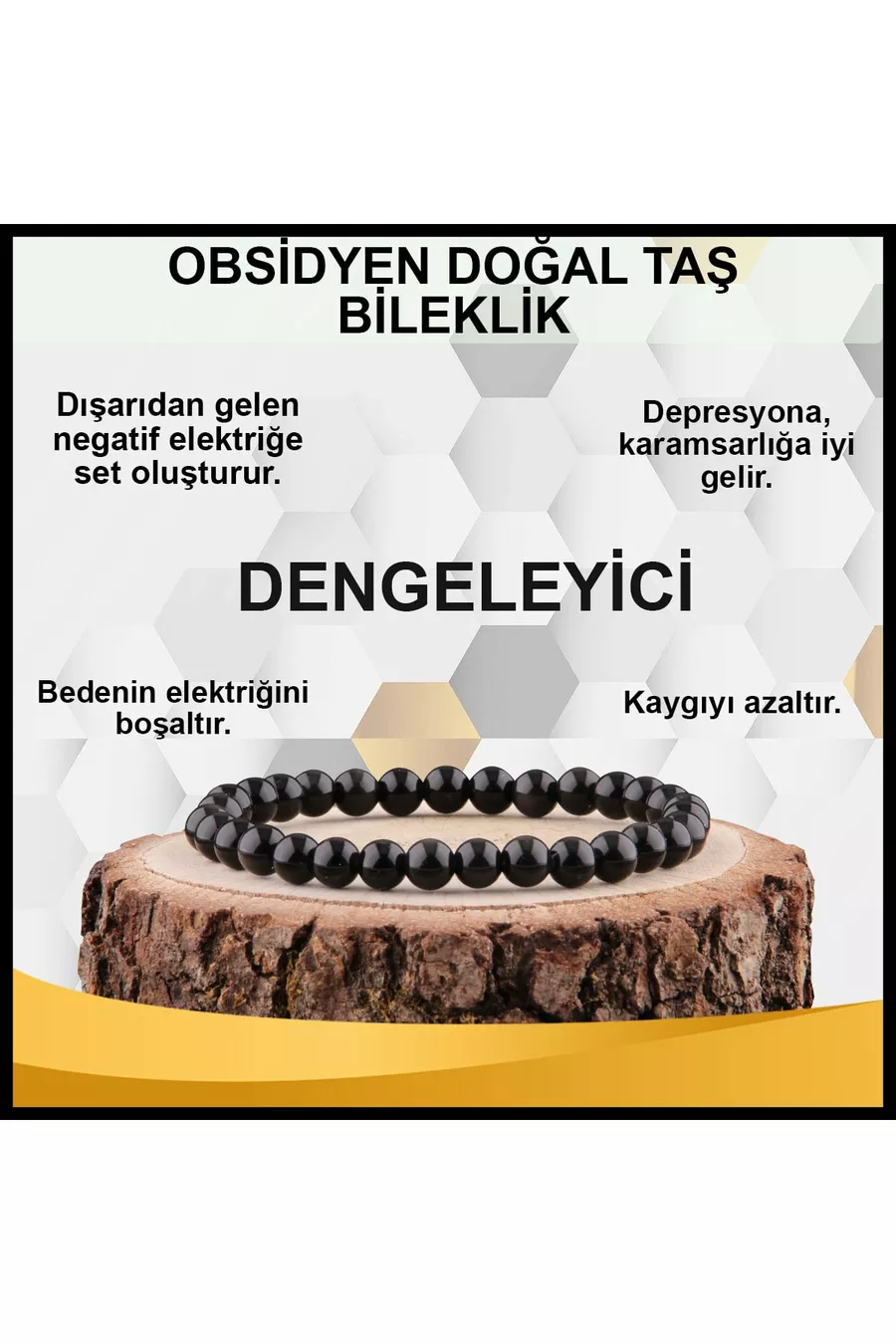 Sertifikalı Obsidyen Doğal Taş Bileklik 6 Mm -