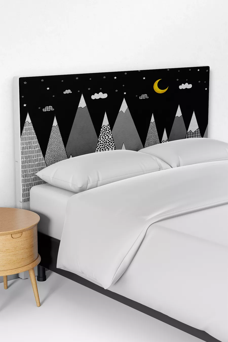 Siyah Beyaz Dağ Desenli Çocuk Yatak Baza Başlık Kılıfı
