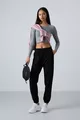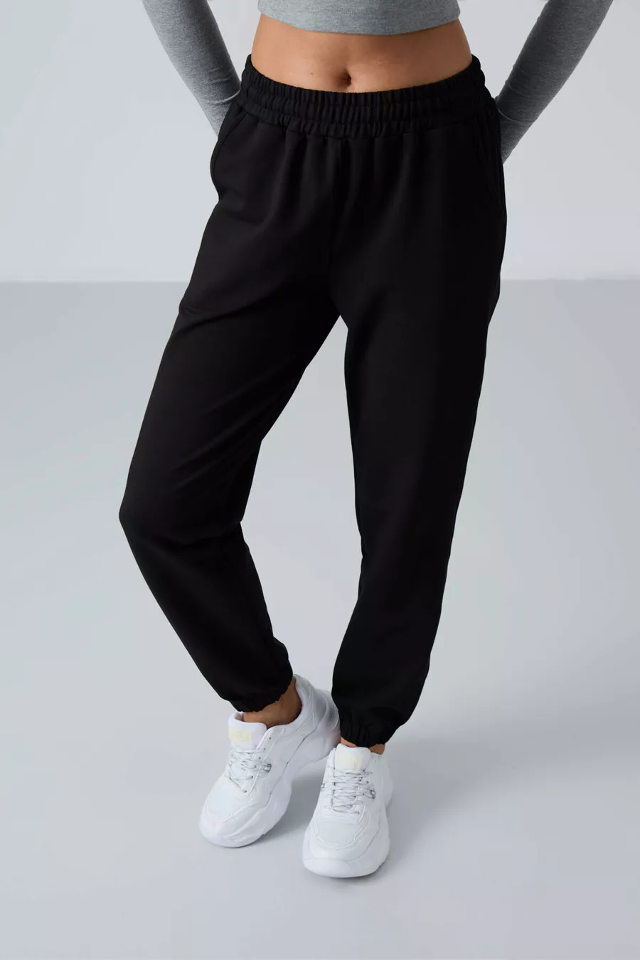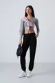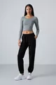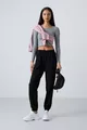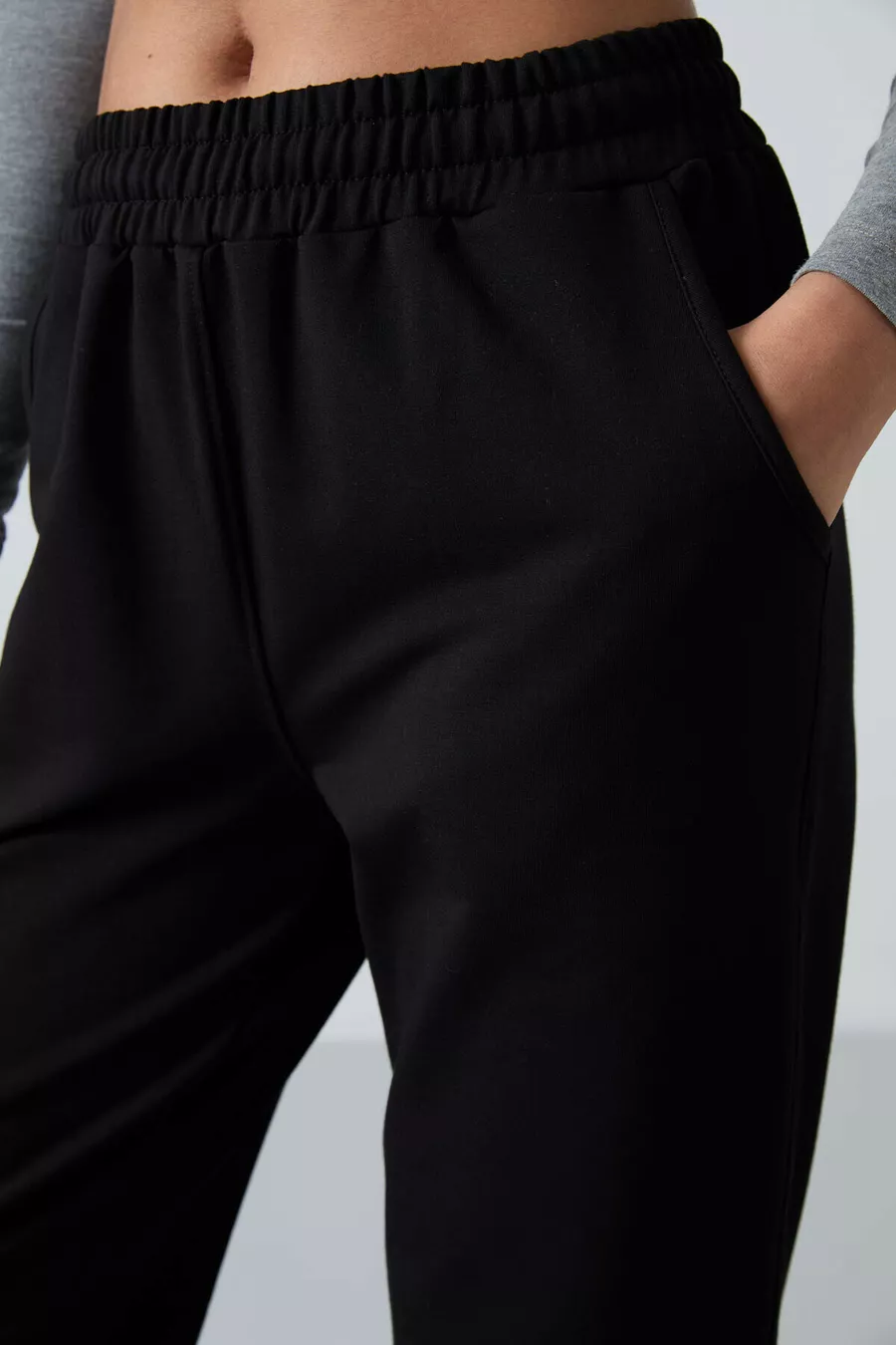 Siyah Cepli Yüksek Bel Rahat Form Lastik Paça Kadın Eşofman Alt -