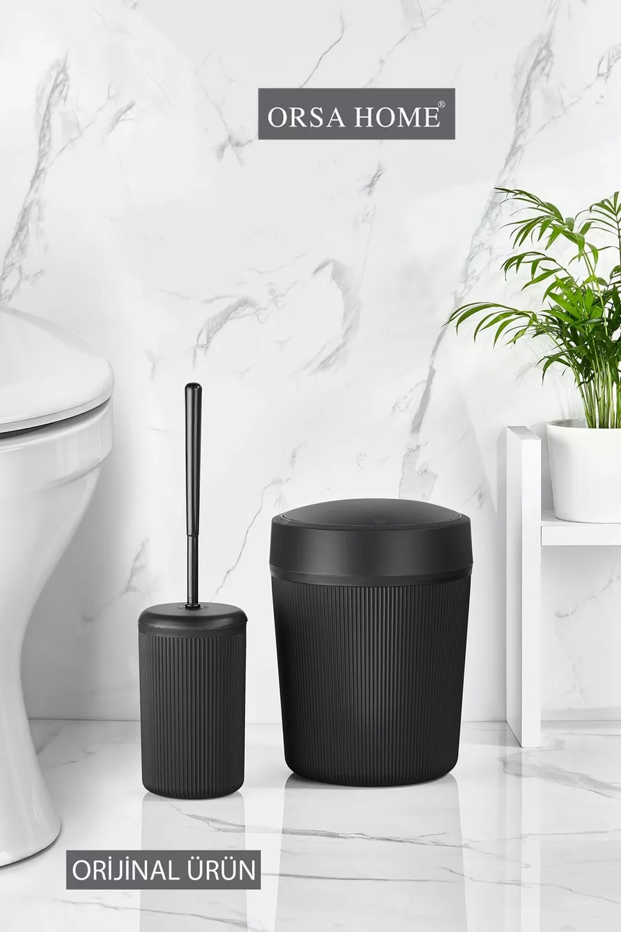 Siyah Banyo Çöp Kovası Ve Tuvalet Fırçası Seti