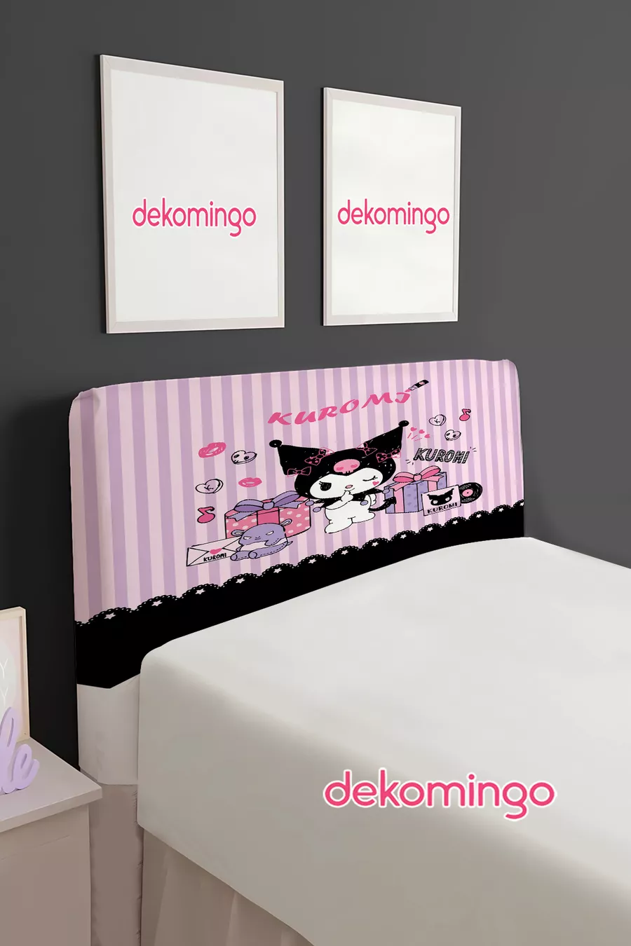 SİYAH PEMBE ŞERİTLİ KUROMİ DESENLİ BAZA BAŞLIK KILIFI ( TEK KİŞİLİK )