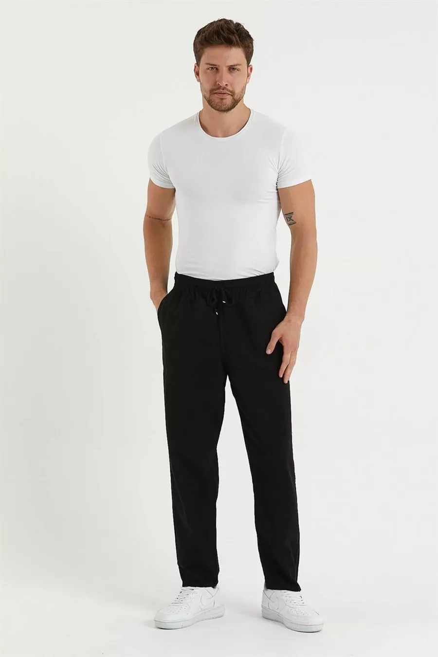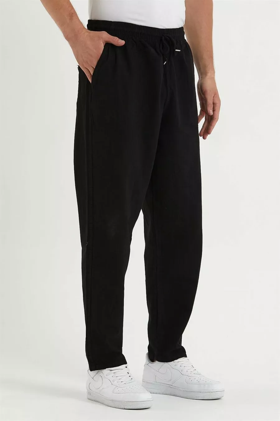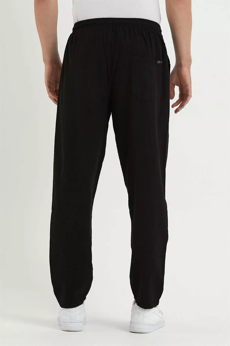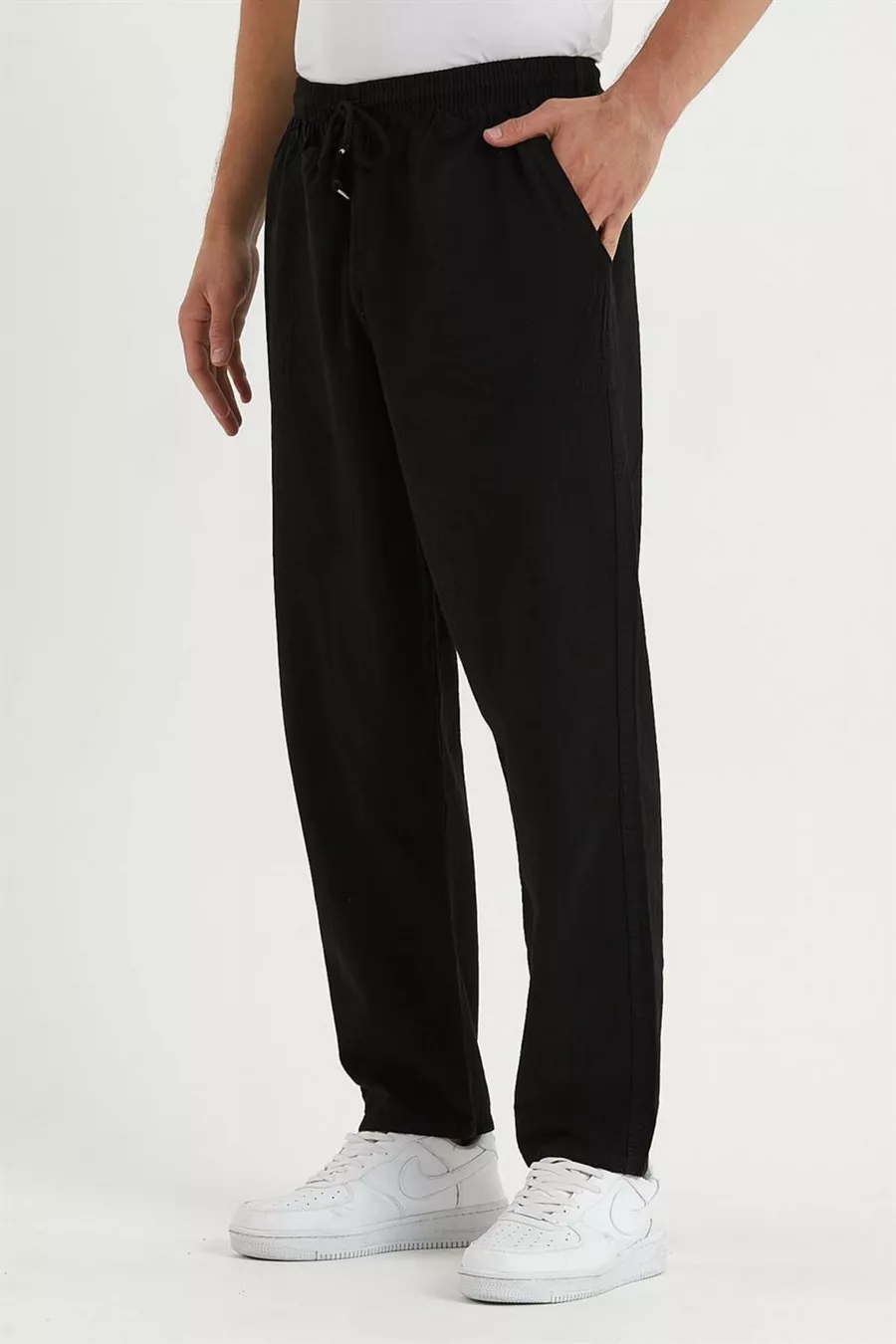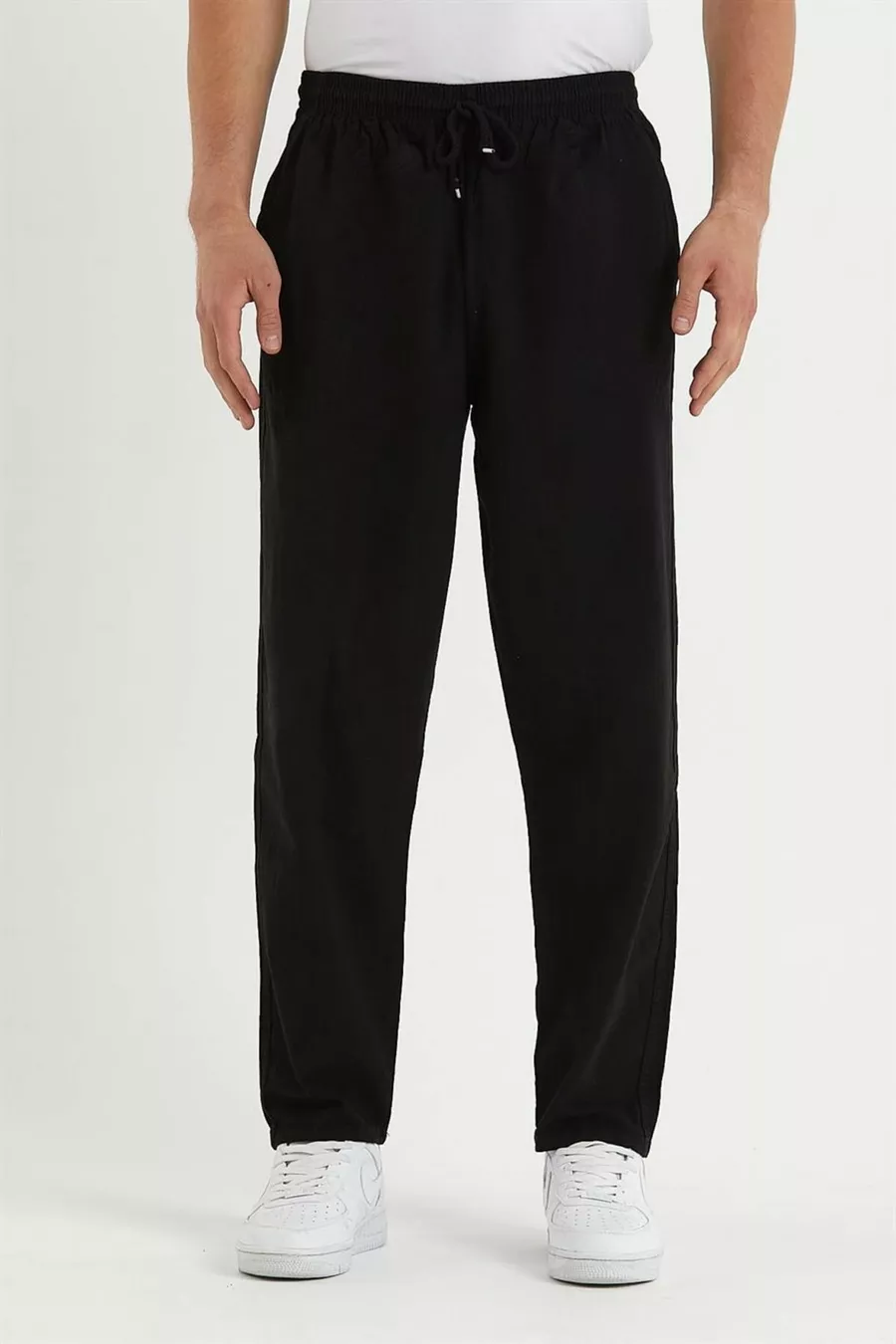 Siyah Renk Erkek Yazlık Keten Karışımı Relaxed Pantolon