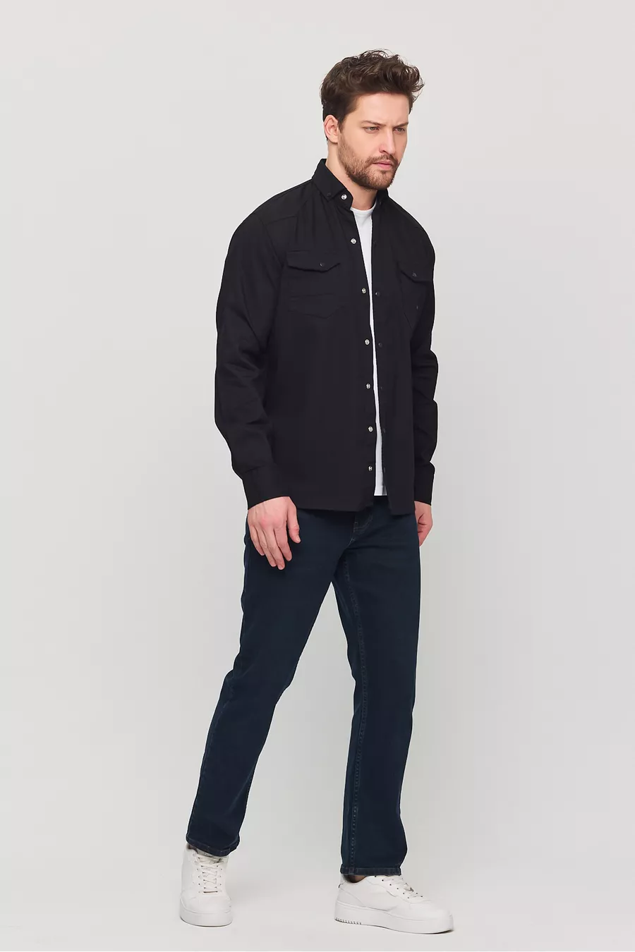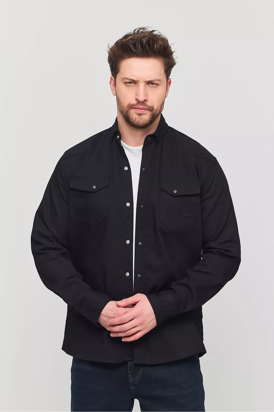 Slim Fit Erkek Kot Gömlek Siyah 5XL BEDEN KİLO