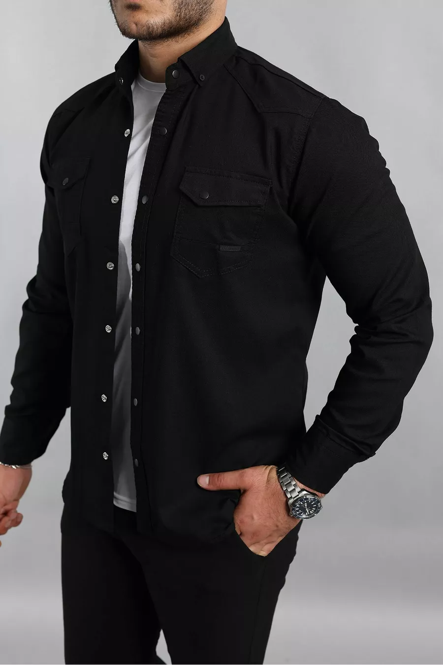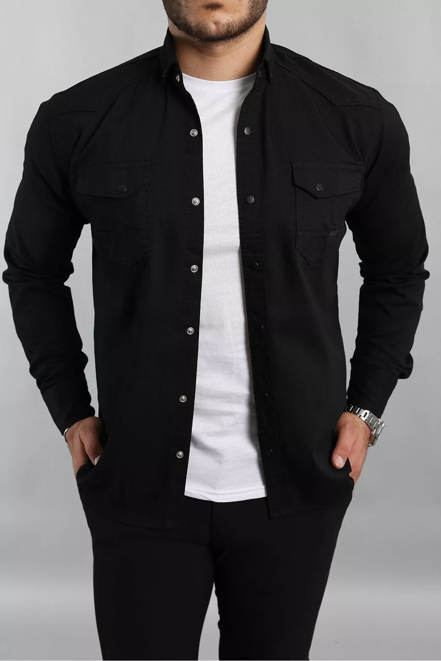 Slim Fit Erkek Kot Gömlek Siyah