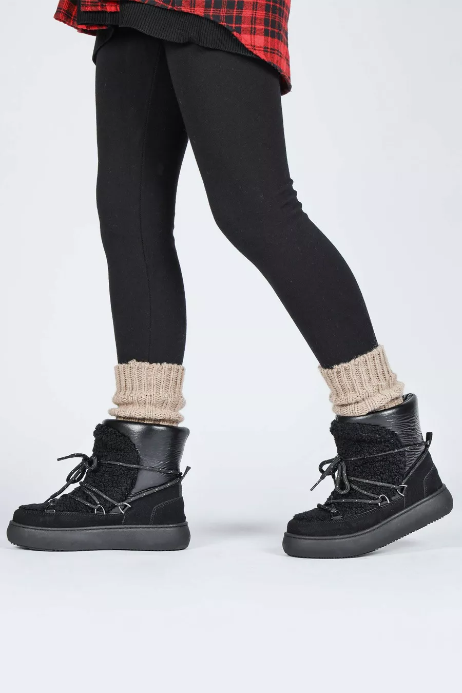 Suya Dayanıklı Kaydırmaz Taban Siyah Kız Çocuk Kar Botu