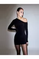 Tek Omzu Açık ve Büzgülü Esnek Elbise