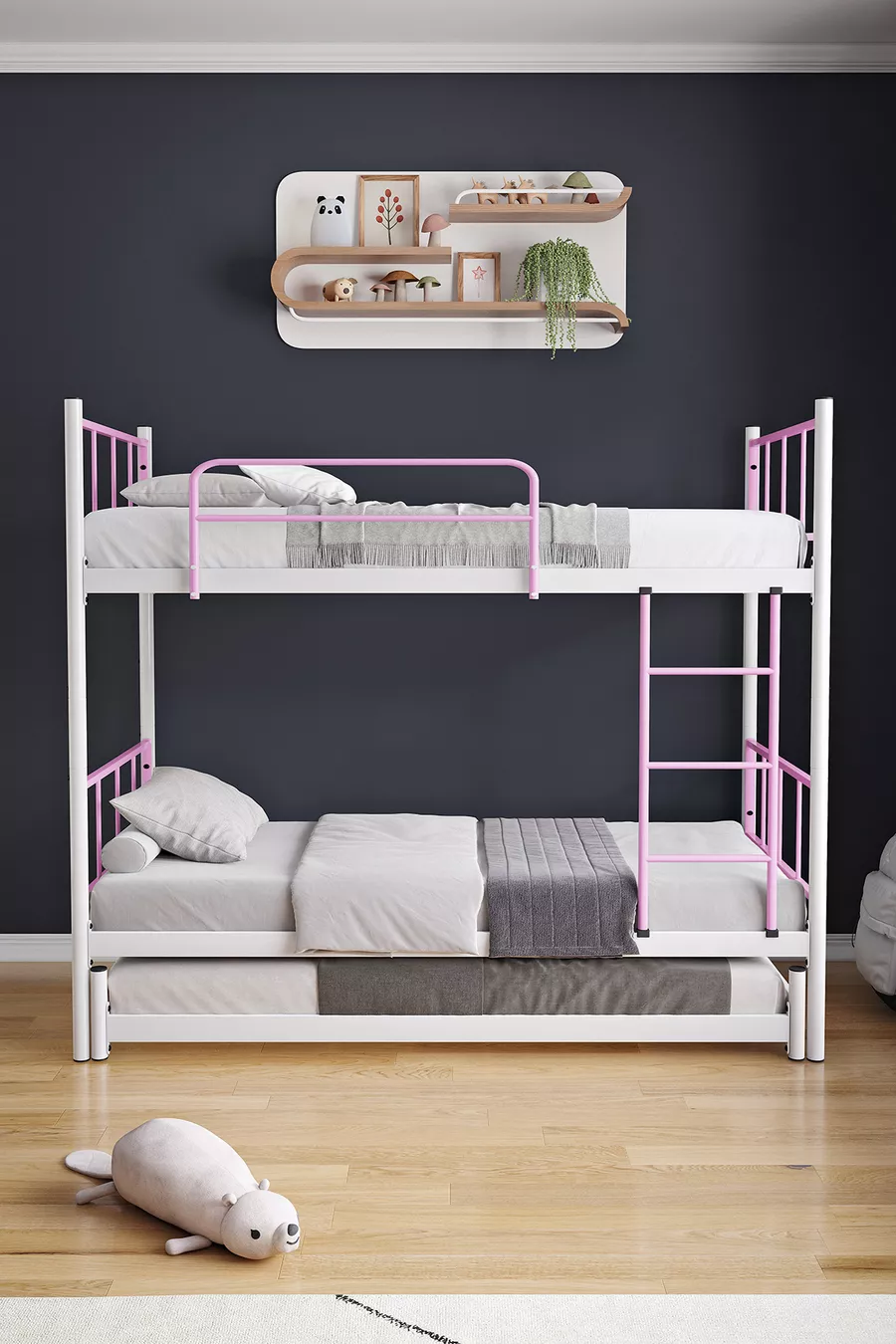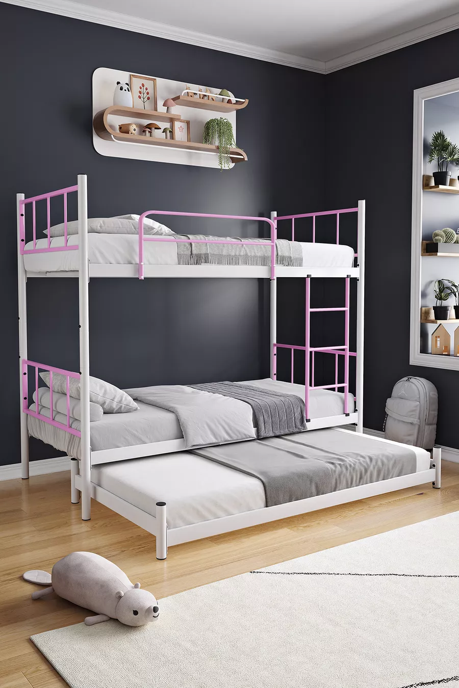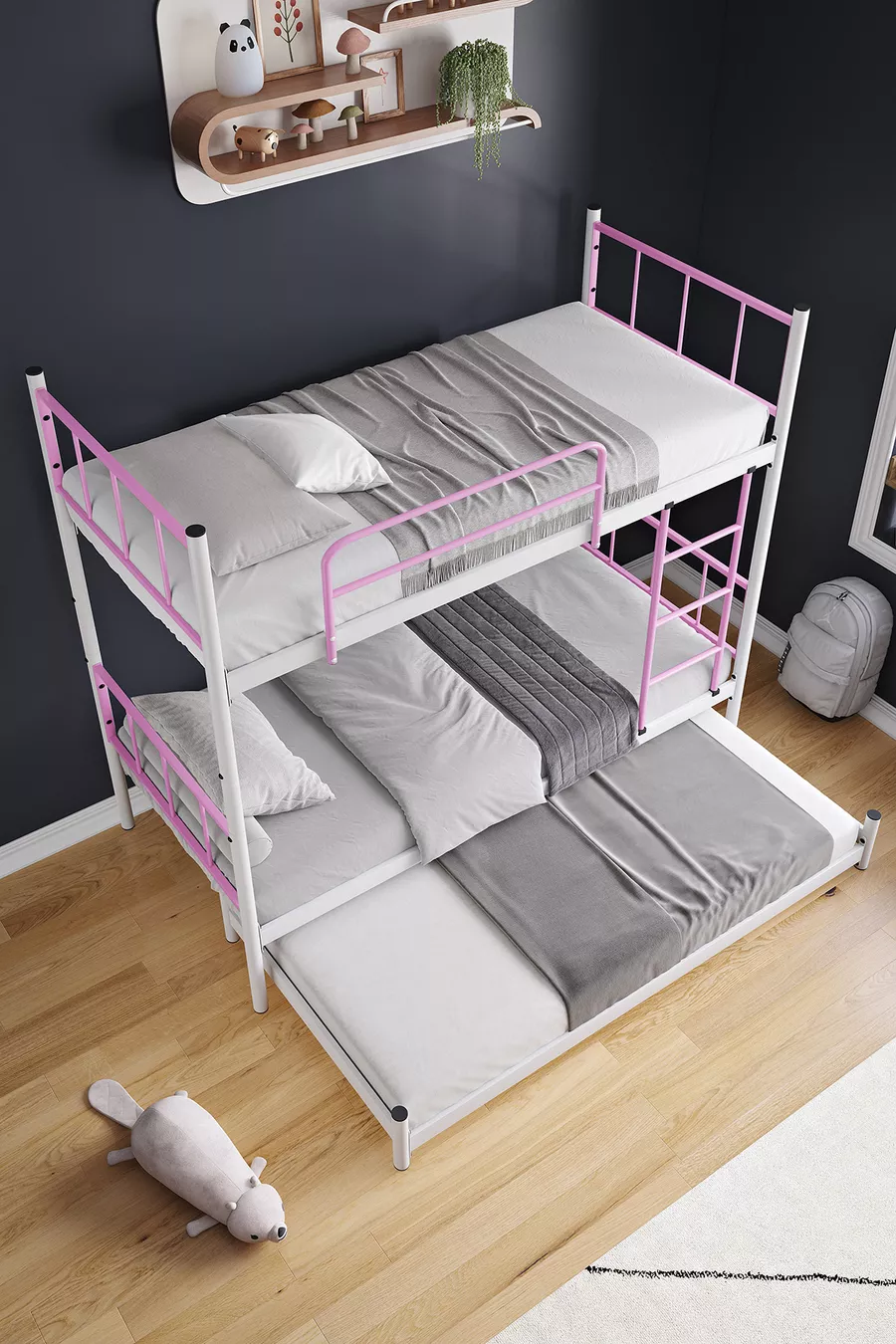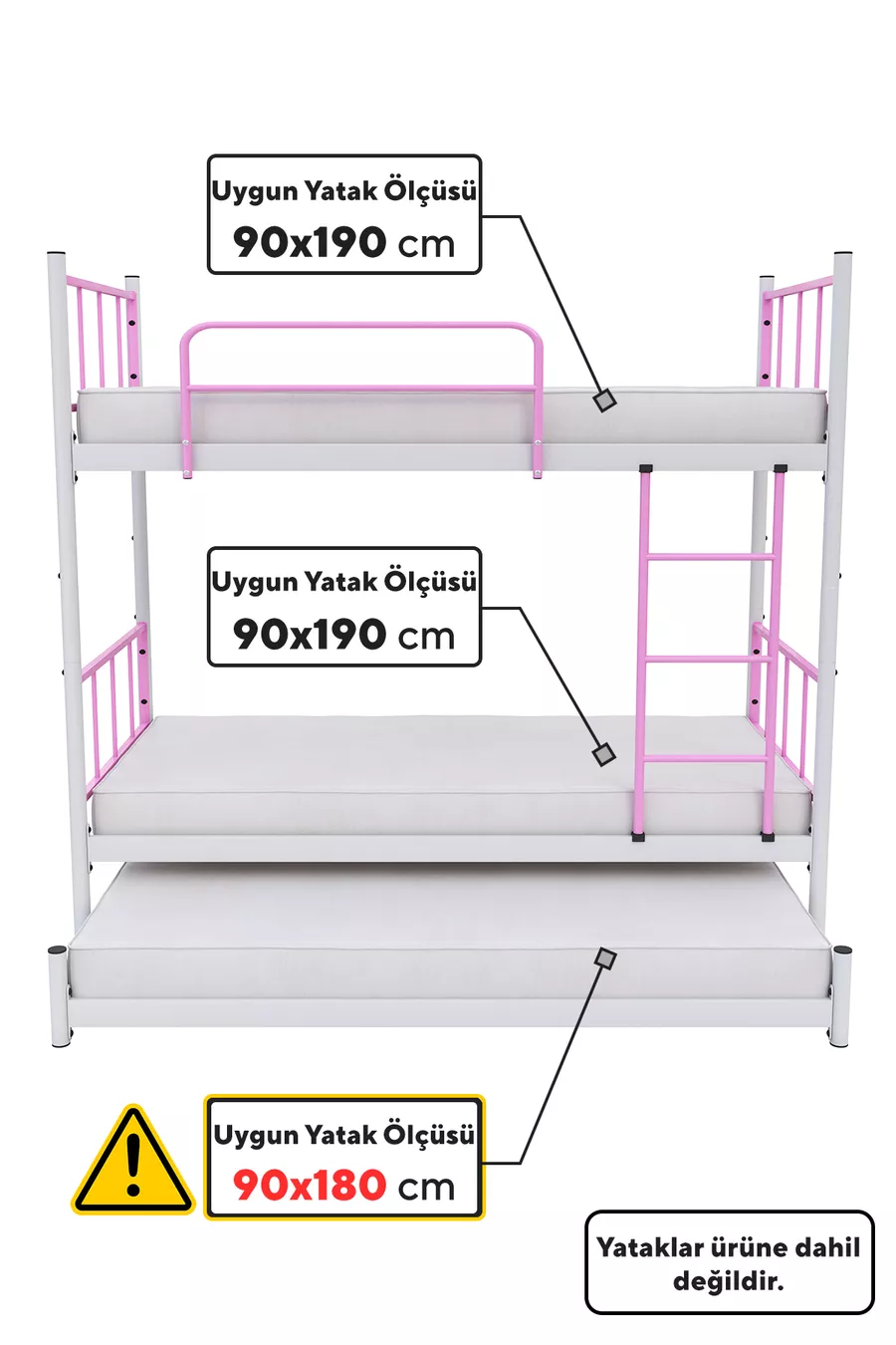 Tekno Yavrulu Ranza Yatak Uyumlu 3 Kişilik Açık Pembe Metal Ranza Karyola