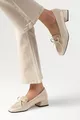 Tilda Bej Renk Küt Burunlu Kısa Topuklu Kadın Ayakkabı