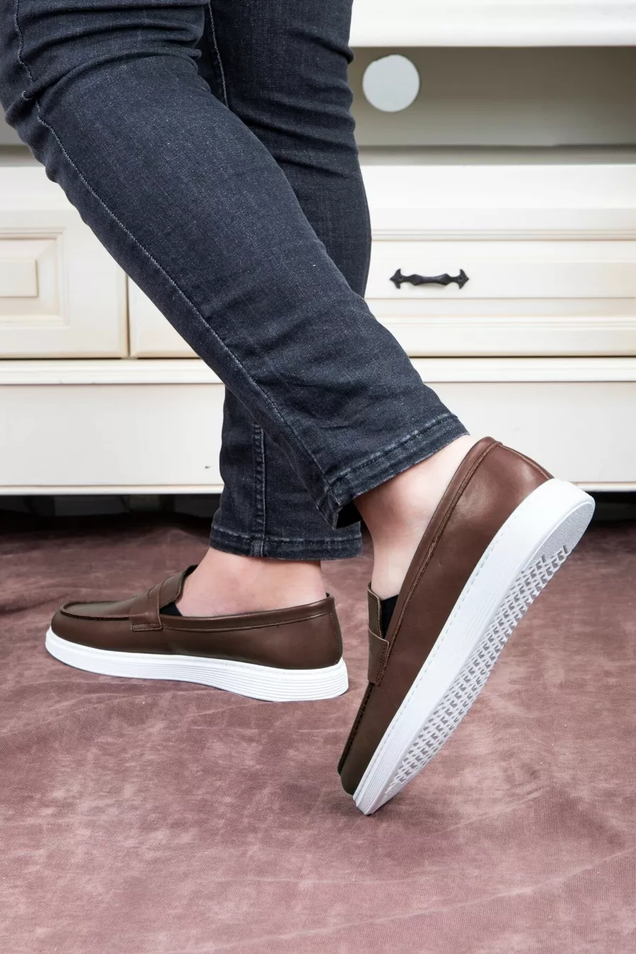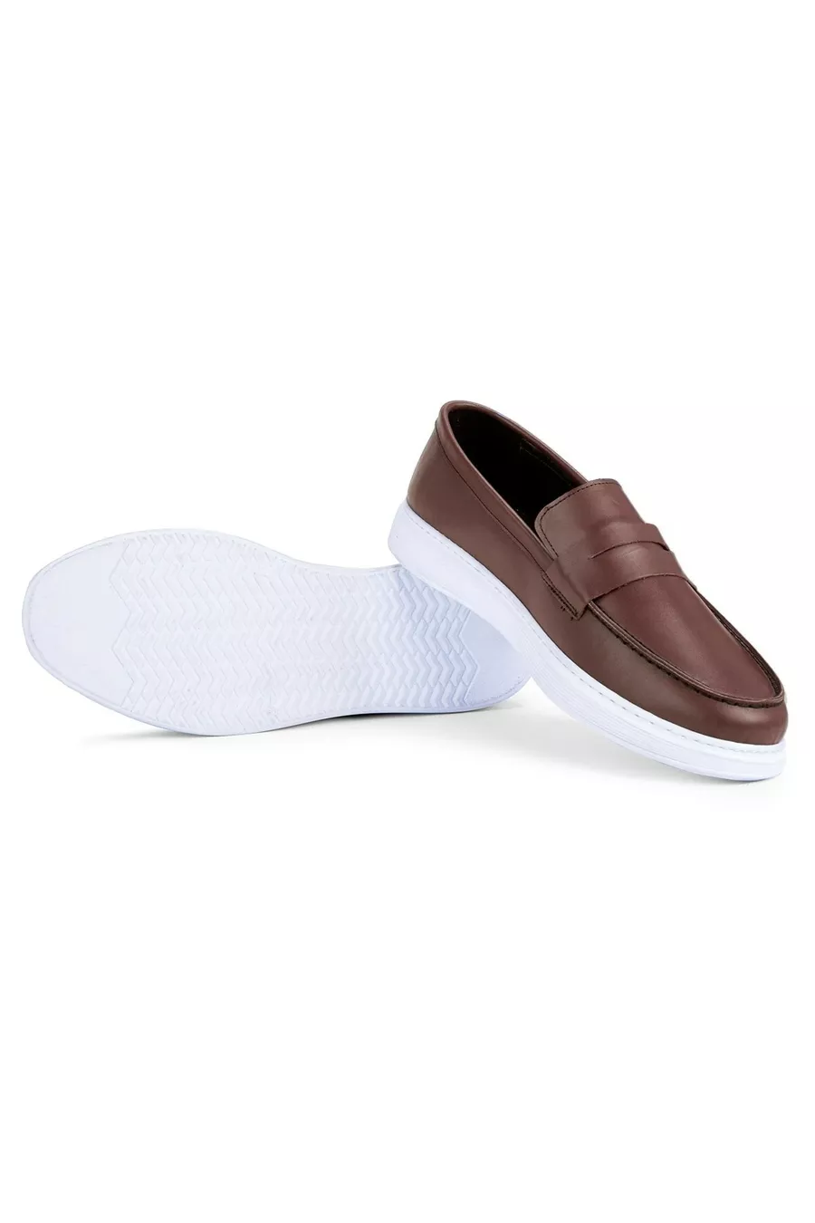 Trim Hakiki Deri Erkek Günlük Ayakkabı Loafer Ayakkabı, Hafif Ayakkabı, Yazlık Ayakkabı Kahverengi