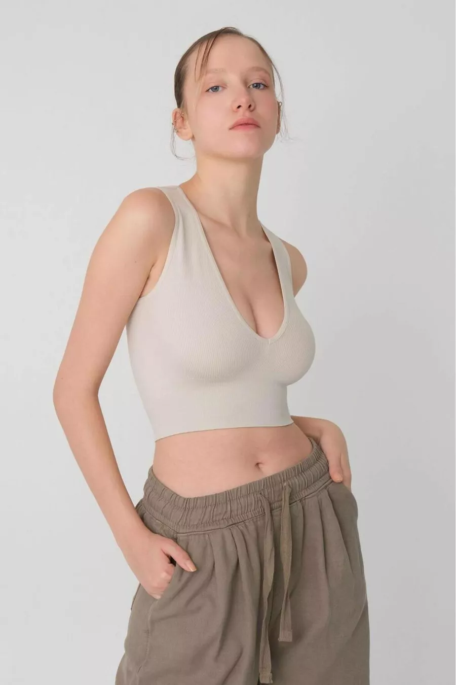 V Yaka Kalın Askılı Seamless Crop